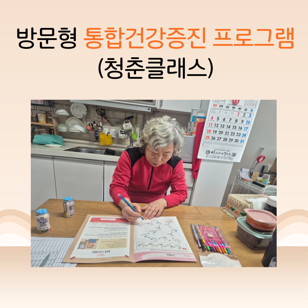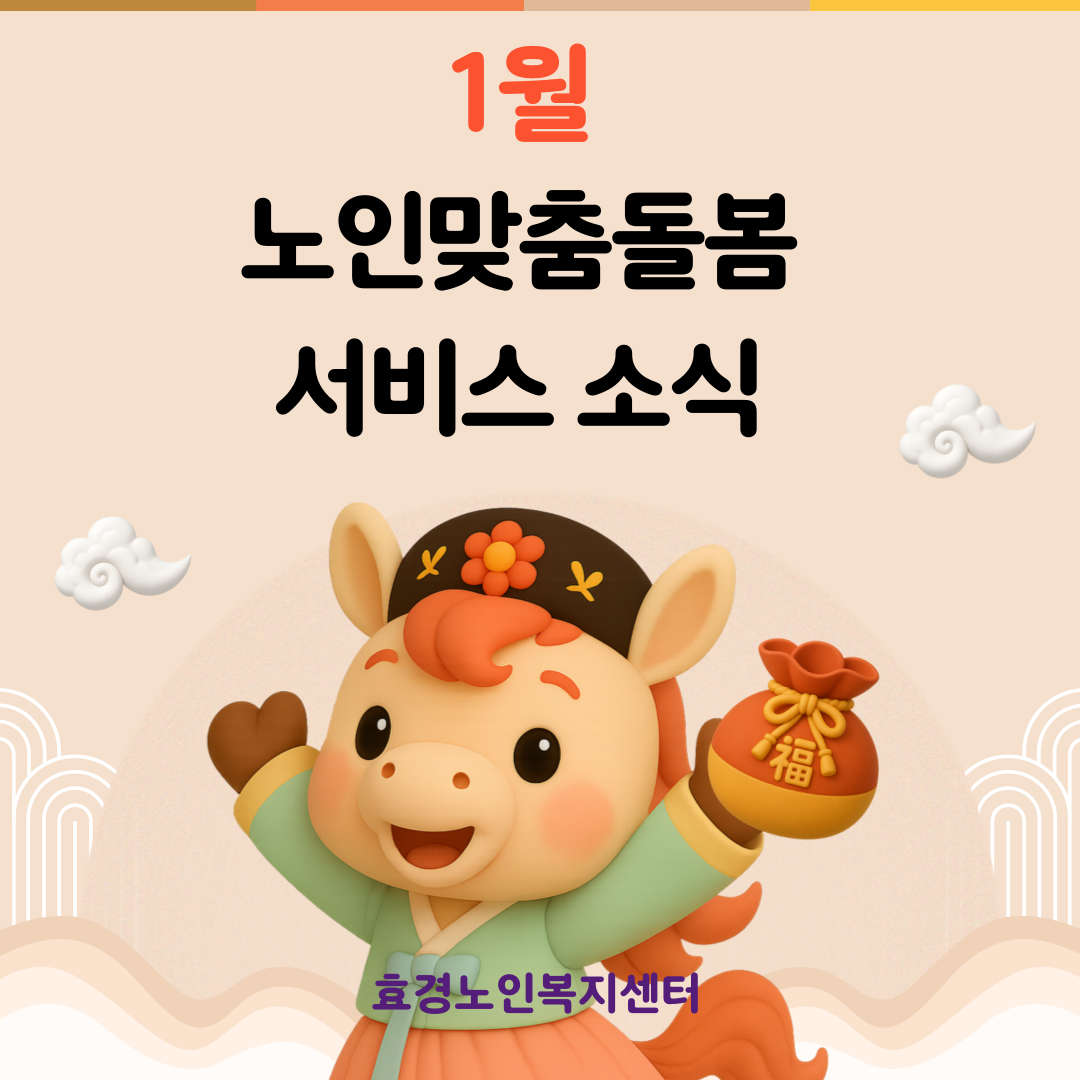 [2026년]효경톡톡 1월호 노인맞춤돌봄서비스 작성자효경노인복지센터|작성시간26.02.20|조회수4 목록 댓글 0 글자크기 작게가 글자크기 크게가 다음검색 현재 게시글 추가 기능 열기 북마크 공유하기 신고 센터로 신고 댓글 댓글 0 댓글쓰기 답글쓰기 댓글 리스트