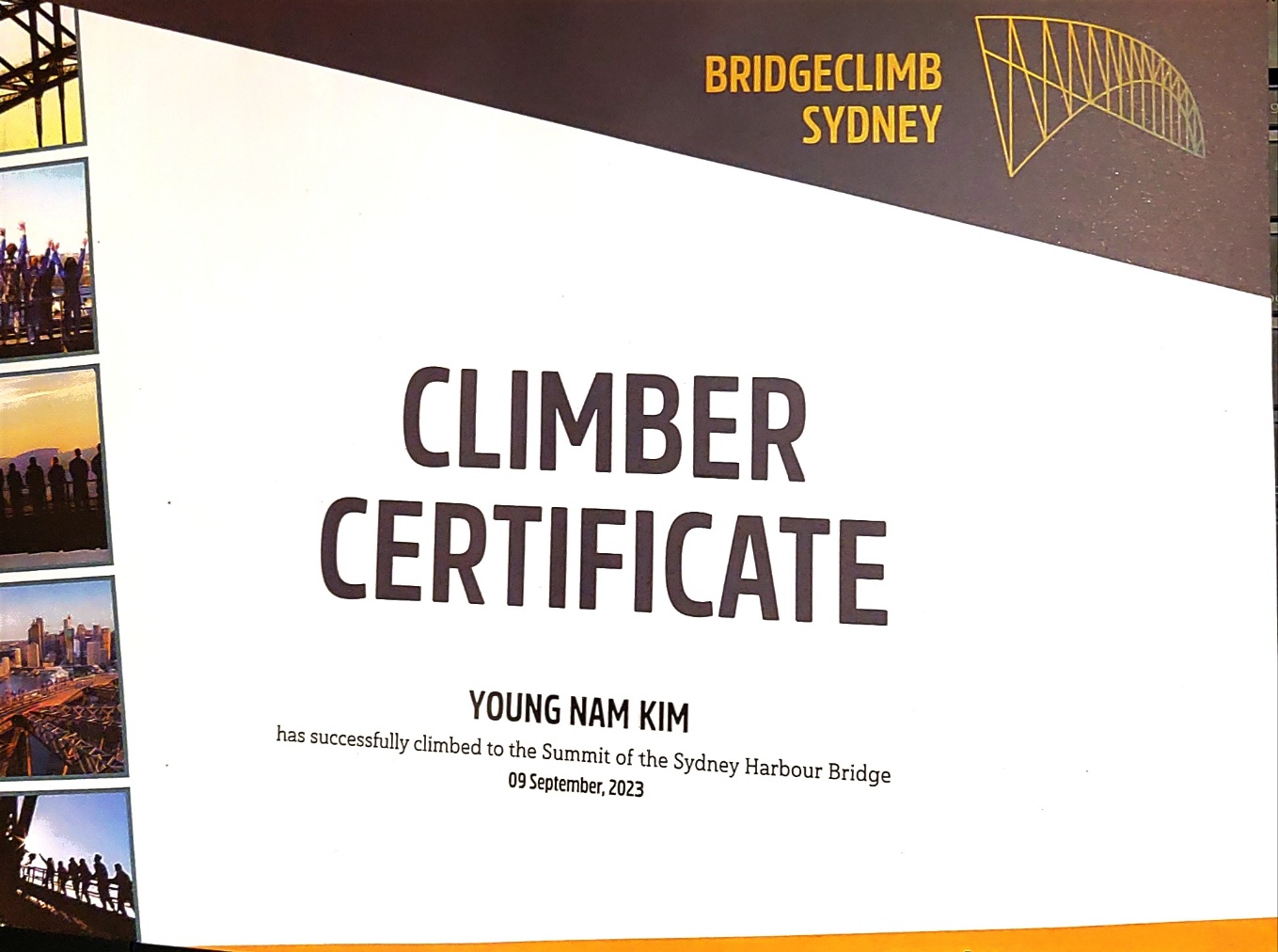 브릿지 클라임이 끝나고 옷과 장비를 반납하고 나면 이수증을 건넨다.