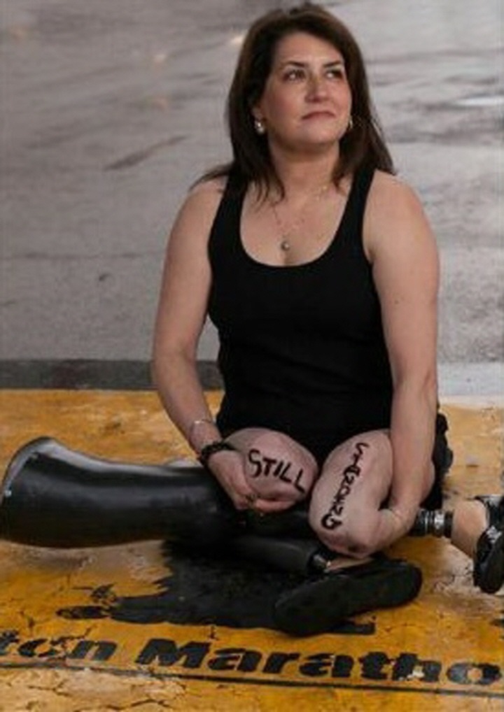 그녀는 이날 의족을 벗고 1년 전 피투성이로