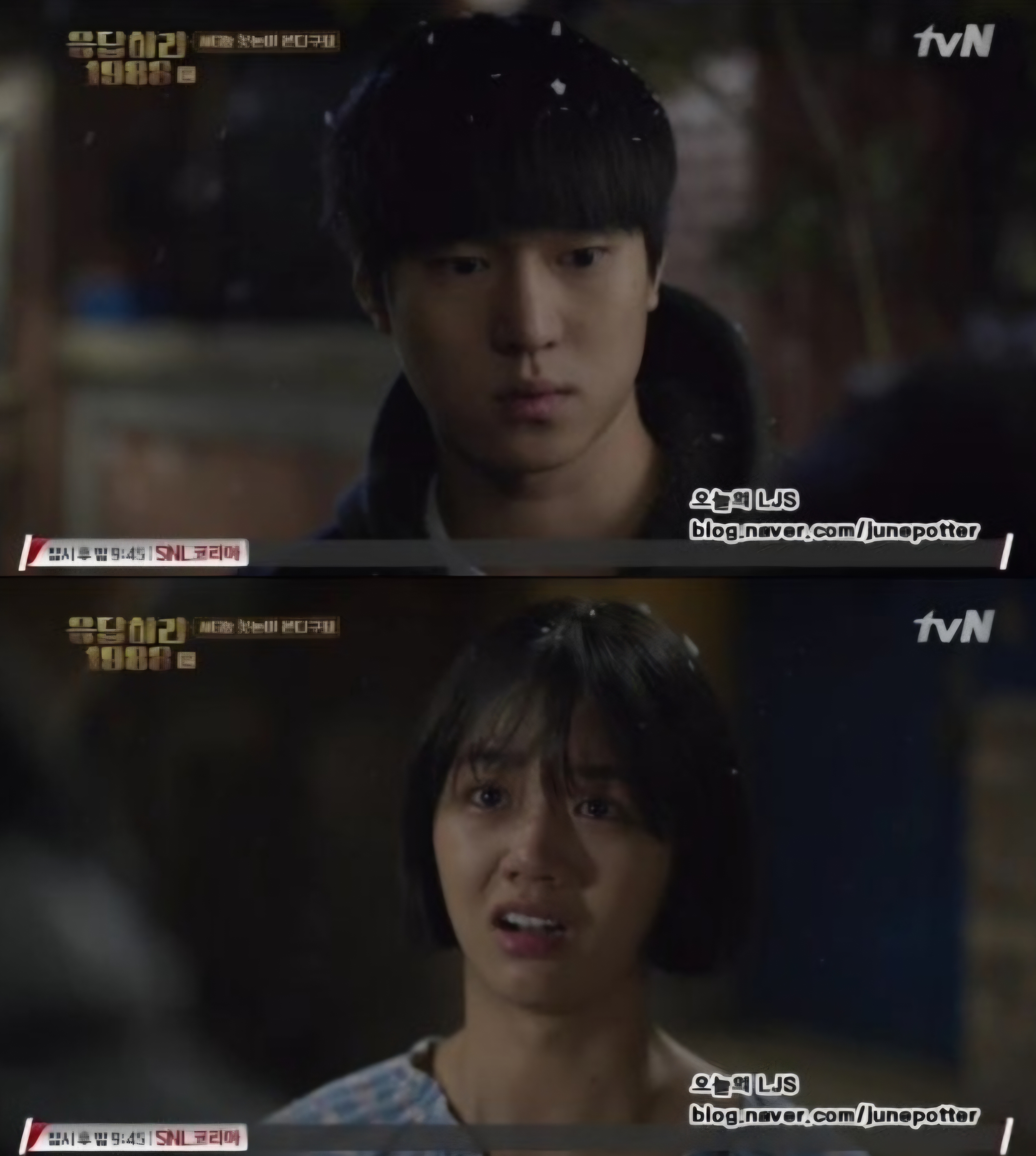 자신을 좋아한다고 믿고 마음을 키워왔던 덕선은 첫눈 오는 날 모든 진실을 알고 펑 펑 웁니다. “왜 하필 보라 언니냐고?” (예쁘고, 똑똑하고, 섹시하니까!!!) " 그 시간 실의(?)에 빠져있던 덕선에게 전화를 걸어온 건 뜻밖에도 택입니다. 택은 들뜬 목소리로 덕선에게 "영화 보자"고 데이트 신청을 합니다. 자식 제법입니다. 여기에 '츤 데려'로 일관 중인 정환 이 덕선을 향한 마음을 풍선처럼 키워가고 있어 향후 덕선을 둘러싼 택과 정환의 삼각 러브라인이 드라마를 보는 큰 재미가 될 것 같습니다.