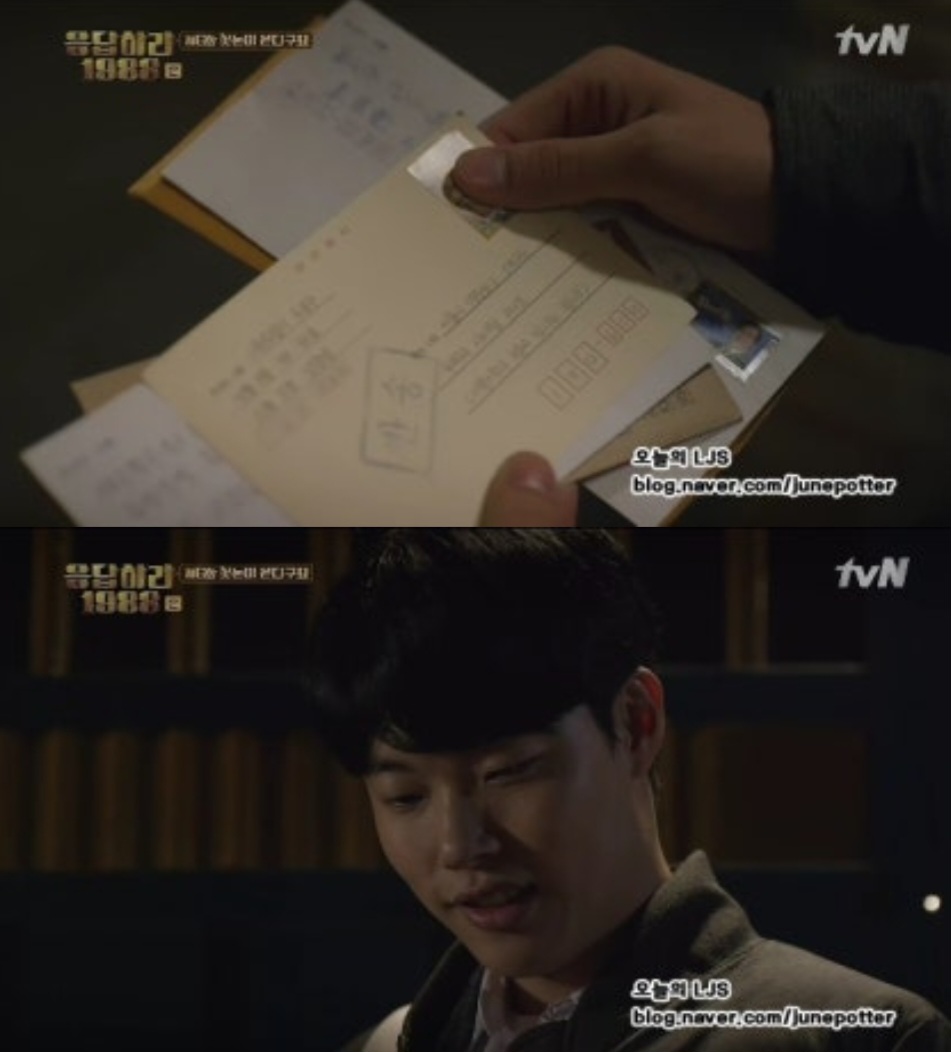 선우네 집에 정환 이가 왔다가 두 권의 콘사이스를 봅니다. 물론 하나는 방주인 선우 꺼, 또 하나는 덕선이 것입니다. 두 남자가 심각해졌습니다. “뭐 마실래... 무슨 생각 해?(선우)” “100% 지 뭐(정환)” “뭐가 100%야? 다 얘기해 줄게 앉아(선우)” “연병, 남의 연애 사 들으면 뭘 해(정환)“ 자-식 까칠하기는. 정환이 이놈 덕선이 좋아하는 거 맞습니다. 경험상으로 정환이가 덕선이 분명히 좋아하는데 그동안 덕선이 자기가 아닌 선우를 좋아한다는 것을 알고 끙끙 앓지 않았습니까?