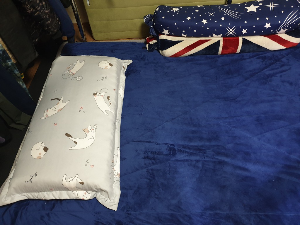 대형 베개니3개를 우선 사가지고 와서 침대 라텍스를 바라시하기 시작했습니다.