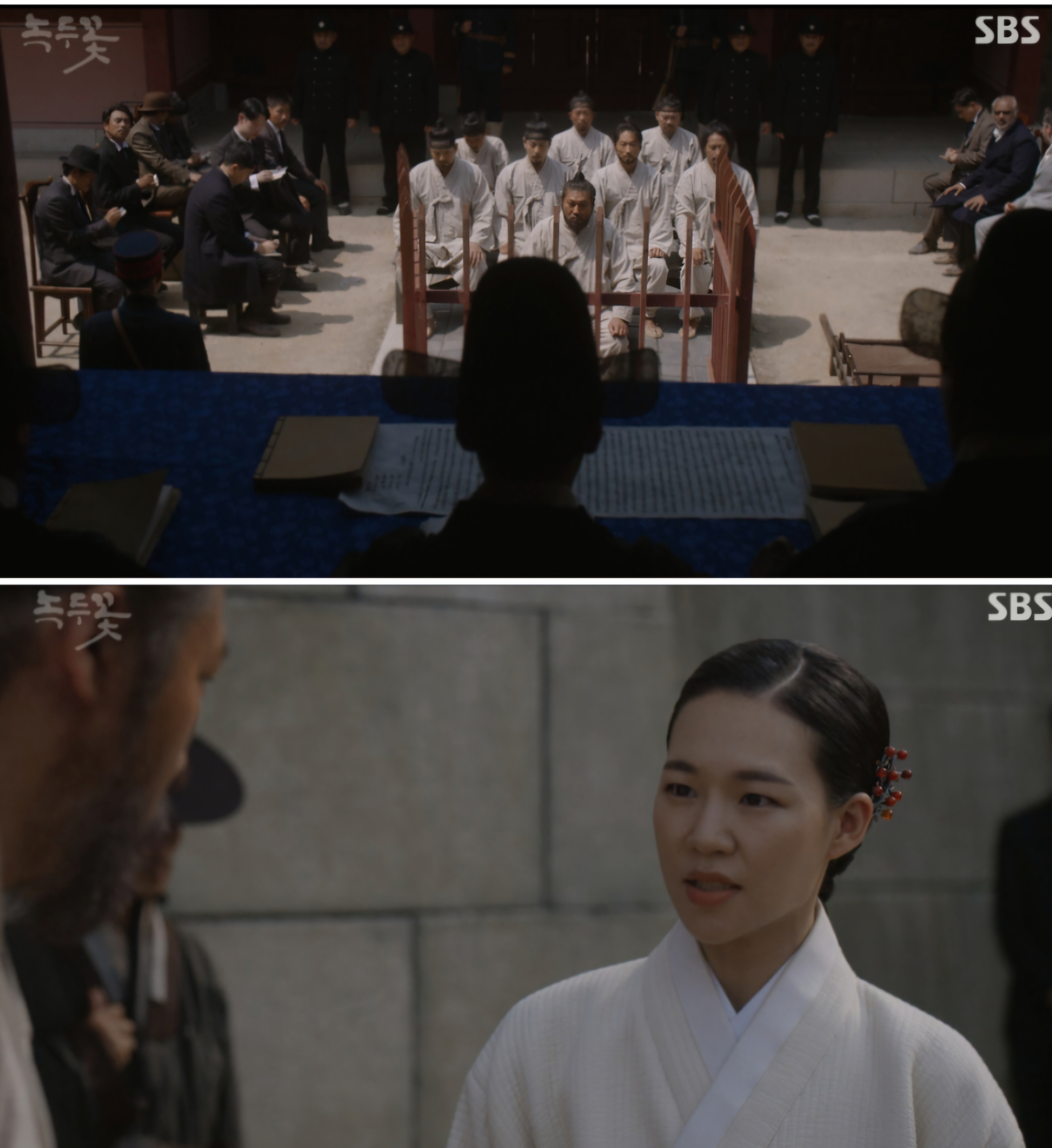 <녹두꽃23회>입니다. 지방 교도소입니다. "이강이는 어찌 되었느냐(전봉준이 오니에게)!" "아직은 모릅니다...살아있다면 내 앞에 나타나겠죠!(오니)" "나가 할일이 쪼까 남았어...내 손으로 눈감겨 줄라네(이강이 유월에게)" "객주님! 건강하세요!(유월이 ) "장군이 원하는 걸 해야제...장군은 죽어도 장군의 뜻은 죽지 않았다는 것을...(이강)" "우금티의 그 많은 시신을 떠올리면서 살아갈 자신이 없었어... 패배일 뿐 끝이 아니라면 나도 다시 시작 해 볼게...이제 가! 가서 힘껏 싸워!...(자인이 강인에게)"