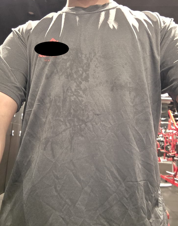 (왼쪽: 러닝 머신 걸은 후에 찍었습니다. 겨드랑이, 가슴은 땀이 현저하게 줄었고, 특히 가슴 왼쪽은 땀이 거의 안납니다.)