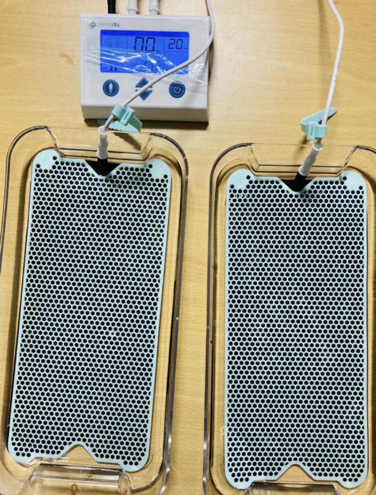 알루미늄 판에 전용타월을 놓고 물을 500ml정도로 해서 사용하는 제품.