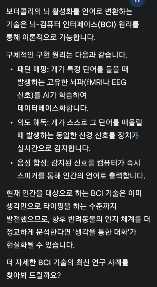 개랑 대화하는세상이 열린다? 작성자땀족장(SWEATCHIEF)|작성시간26.01.04|조회수42 목록 댓글 1 글자크기 작게가 글자크기 크게가 사람에게는 적용되었음. https://youtube.com/shorts/pa0zg-1dyO8?si=R71zOlyznT3Qzqox 다음검색 현재 게시글 추가 기능 열기 북마크 신고 센터로 신고 댓글 댓글 1 댓글쓰기 답글쓰기 댓글 리스트 작성자starsailor | 작성시간 26.01.04 기술 발전이 놀랍네요 개와 대화할 수 있다니 넘 신기할것 같아요^^ 댓글 전체보기