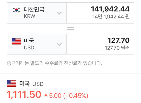 이걸 미국 달러로 바꾸면 127.70 달러가 나오네요 ㅎ