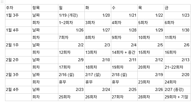* 위 스케줄은 변동 가능합니다