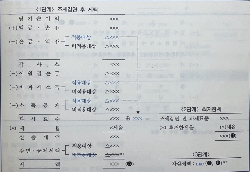 세법 38 작성자외다리장군|작성시간25.08.22|조회수339 목록 댓글 2 글자크기 작게가 글자크기 크게가 안녕하세요! 좋은 문제 내주셔서 감사합니다.비중소기업의 최저한세는 min(max(A,B), 감면 전 세액) 이므로 33,200,000을 이용하여 적용배제할 익금불산입액을 구해야하지 않나요?? 다음검색 현재 게시글 추가 기능 열기 북마크 신고 센터로 신고 댓글 댓글 2 댓글쓰기 답글쓰기 댓글 리스트 작성자8월세법출제자 | 작성시간 25.08.22 안녕하세요 세법개론 출제자 입니다. 해당 문제는 감면 전 세액보다 최저한세가 작은 경우로서 질문자님께서 언급하신 33,200,000은 사용되지 않습니다.min(max(A,B), 감면 전 세액)min(max(13,850,000 , 28,000,000), 33,200,000) 이렇게 대입해보시면 될 것 같습니다! 작성자외다리장군 작성자 본인 여부 작성자 | 작성시간 25.08.23 제가 잘못 풀었네요 ㅠㅠ 감사합니다!! 댓글 전체보기