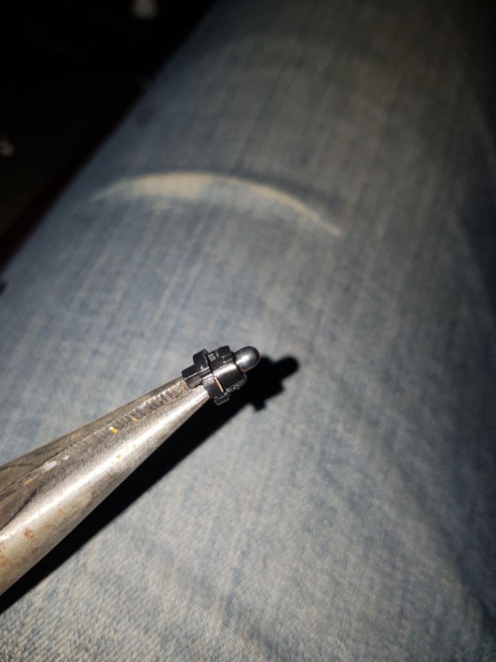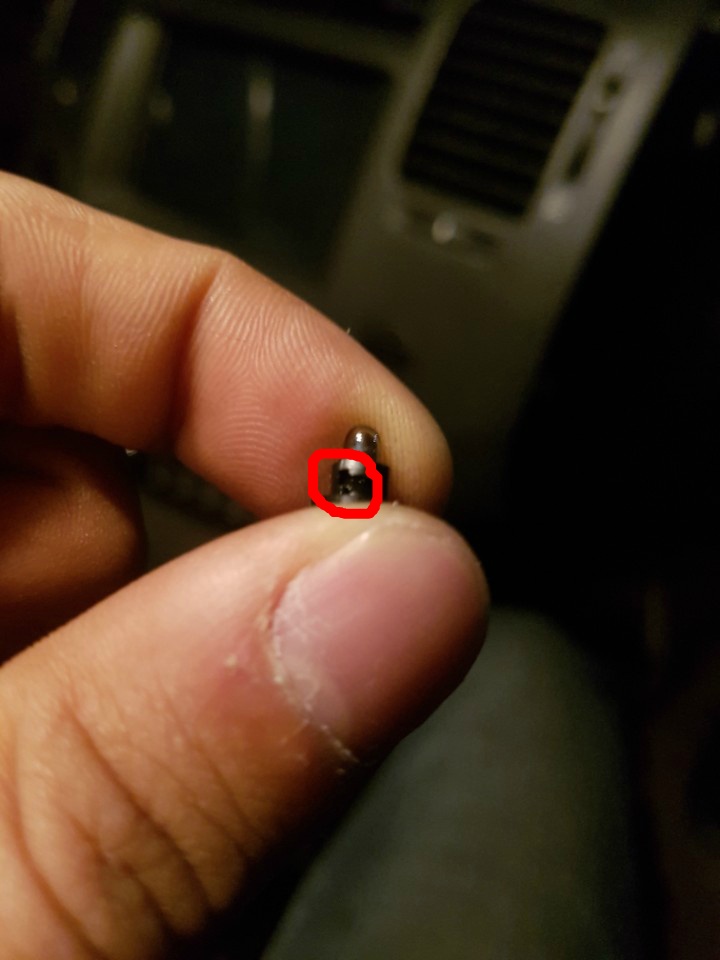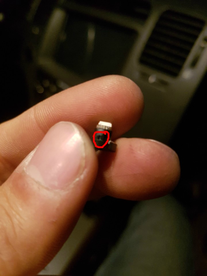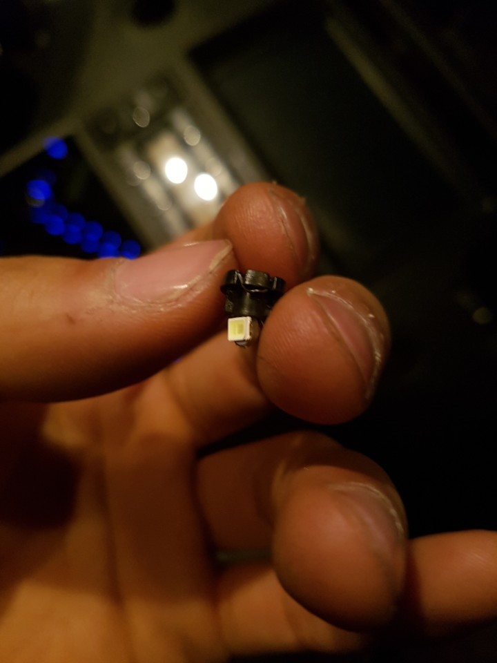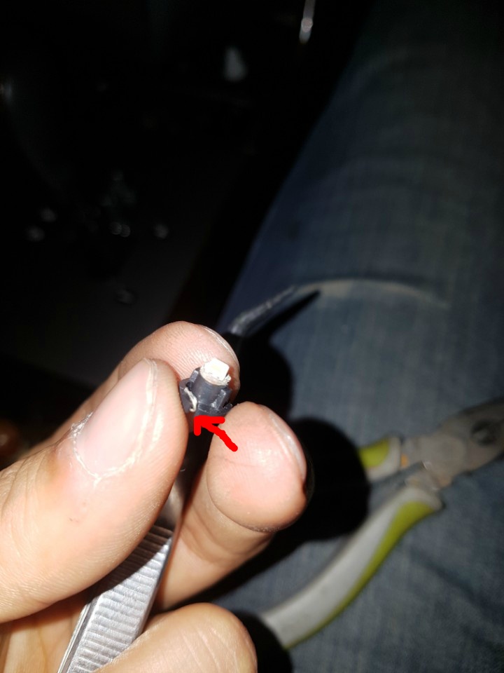 탈거하면 이렇게 좁쌀전구 하나가 박혀있습니다. 롱노즈로 살짝 잡아 왼쪽으로 틀면 빠집니다.