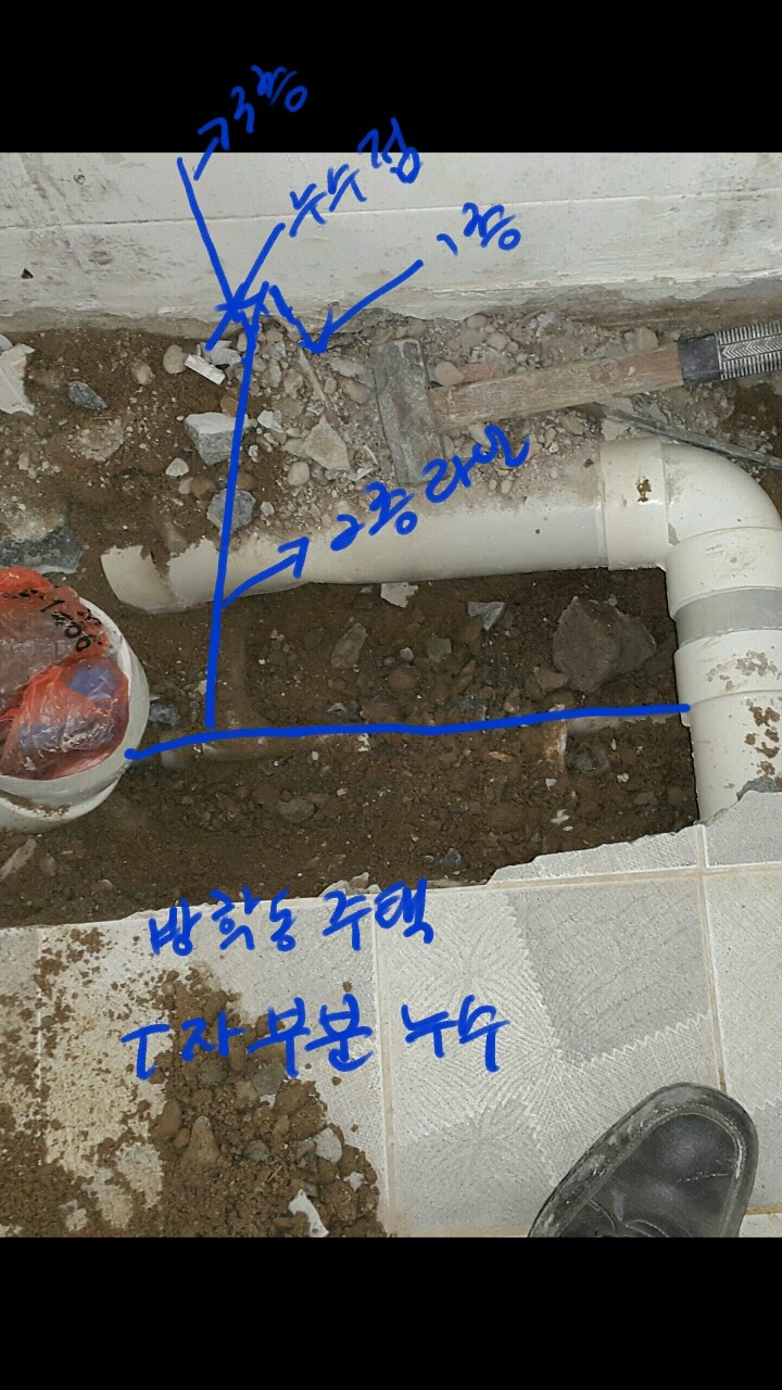 pb관 작업 자가 연결 을하지않아 누수가됨.