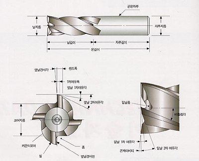 경제적이며 효율적인 엔드밀 가공을 위해서는 피삭재의 형상, 가공능률, 가공정도등을 고려하여 적당한 엔드밀을 선택 사용하여야 하며, 엔드밀의 직경, 날수, 날길이, 비틀림각, 재질 등이 중요한 요소로 고려되어야 한다. |