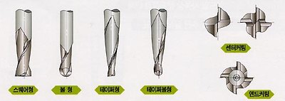 (5) 다이아몬드 엔드밀 : 비철금속이나 알루미늄 합금, 동합금, 수지류에 적용 |