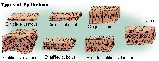 The basic cell types are squamous, cuboidal, and columnar classed by their shape.