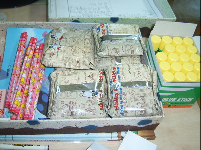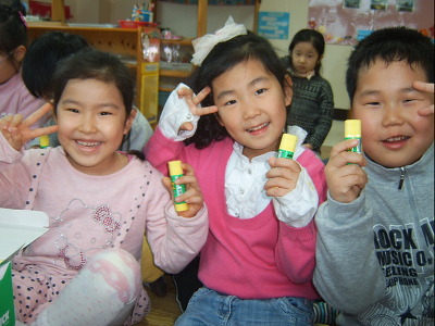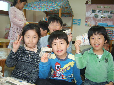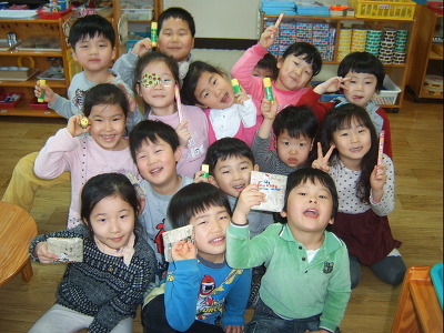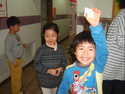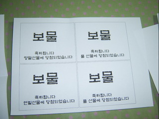 축하합니다양말,연필,풀 선물에 당첨했습니다^^ 보물용지에 기록된 선물을 받고 기념사진 한컷~~~