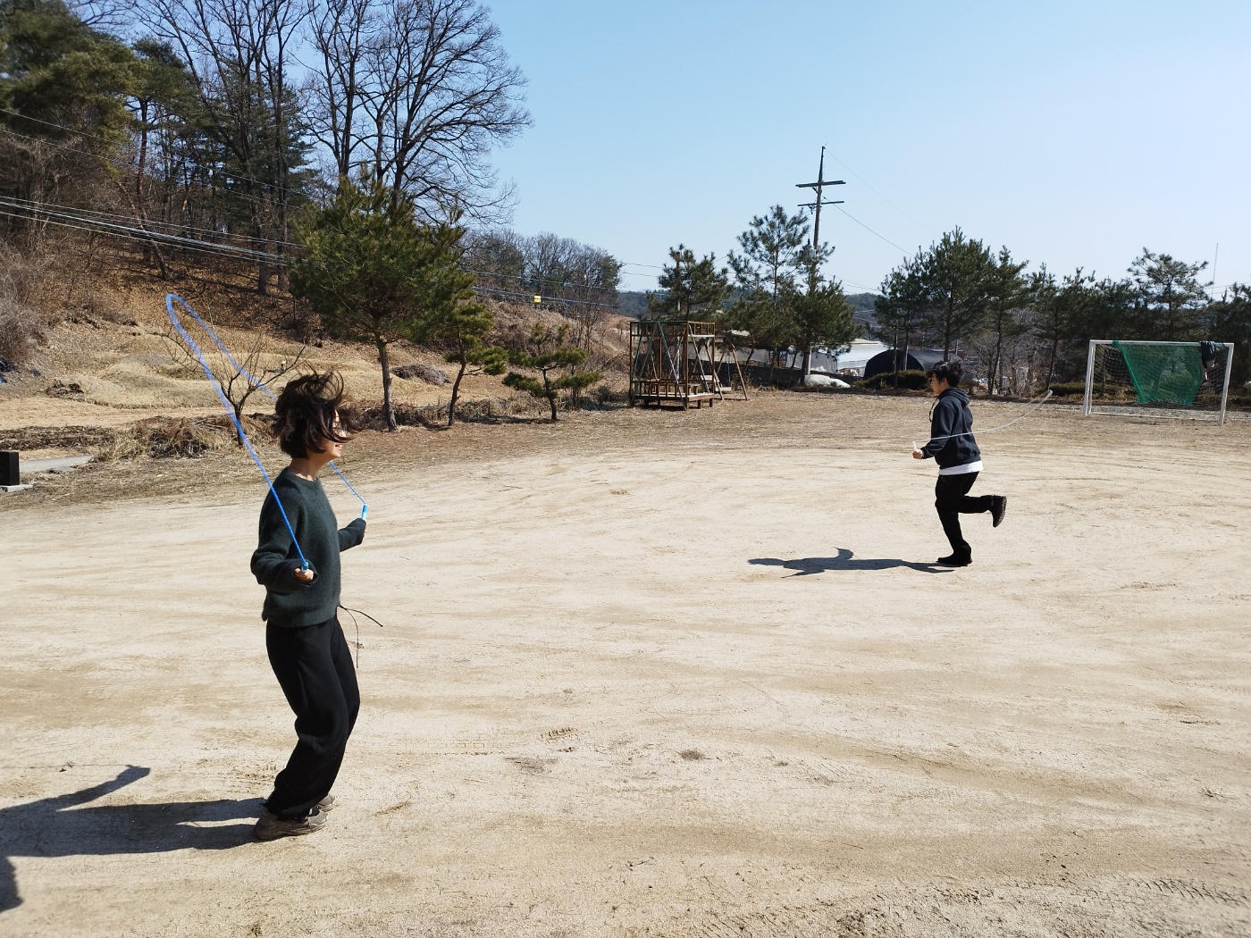도림이는 이단뛰기를 엄청 잘 합니다. 주현이도 오랜만에 줄넘기를 해본다며 이단뛰기 도전!