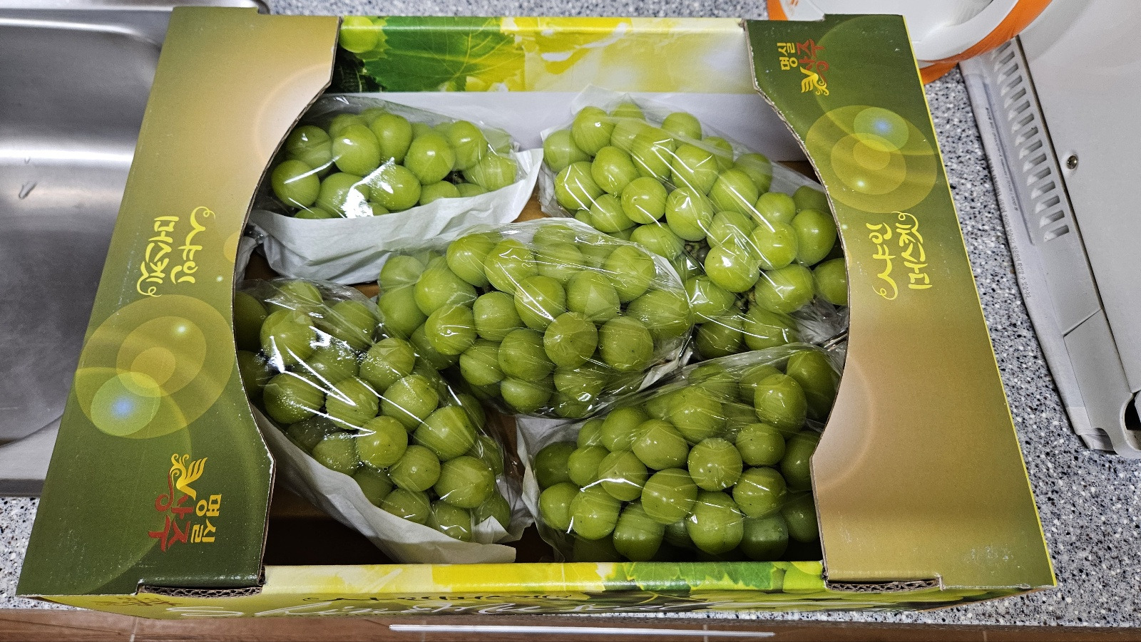 학교로 배달되어 온 탐스러운 샤인머스켓!