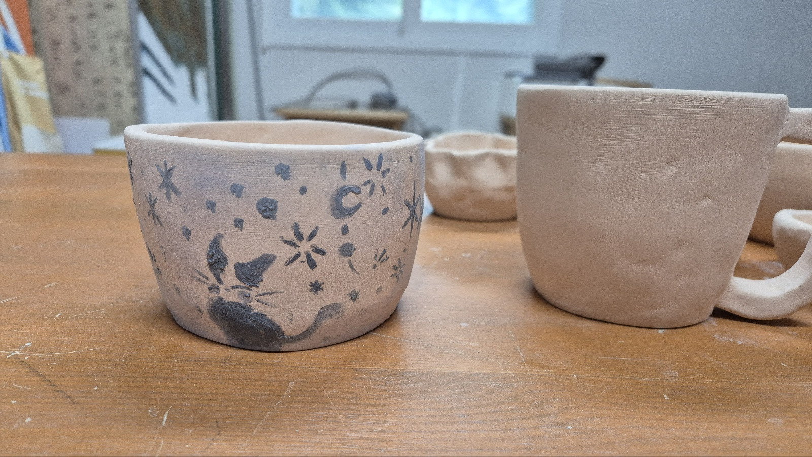 초벌을 해놓고 보니 태우의 커피잔이 참 예쁘게 나와서 어떤 그림을 그릴지 더 고민이 된다고 하네요. ㅎㅎ