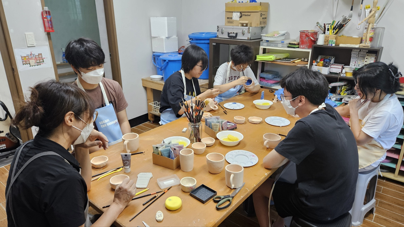 도자용 연필과 물감 사용 방법에 대해 배우고