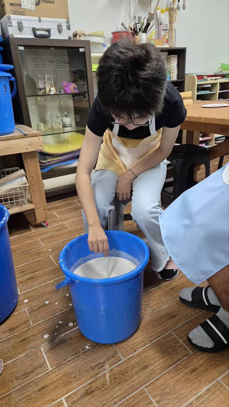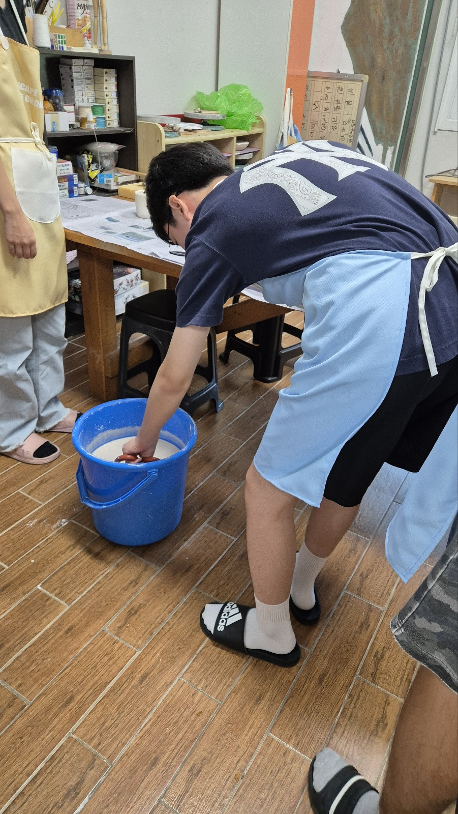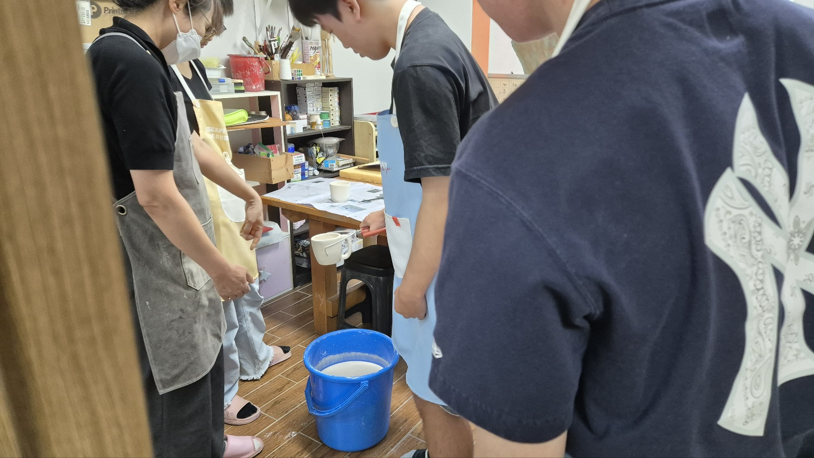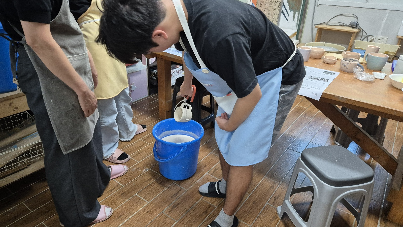 중간에 절대 유약통 속에 빠트리면 안 되기 때문에 긴장&집중하면서 각자 자신의 작품을 유약 처리해보았습니다.