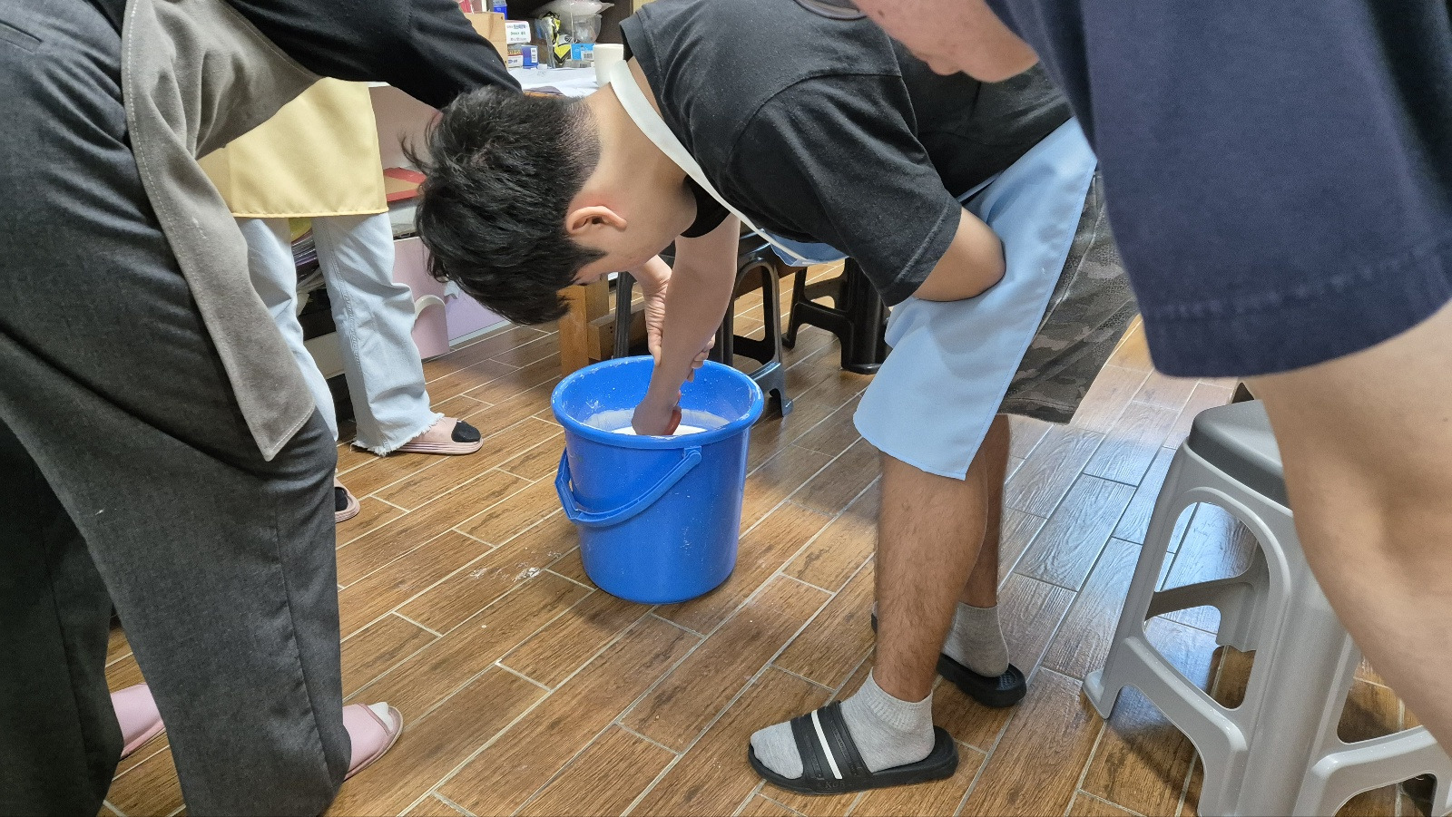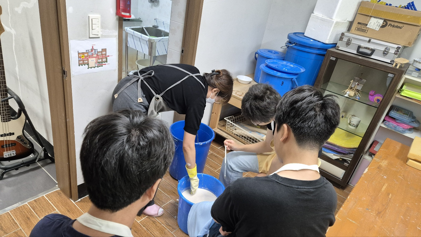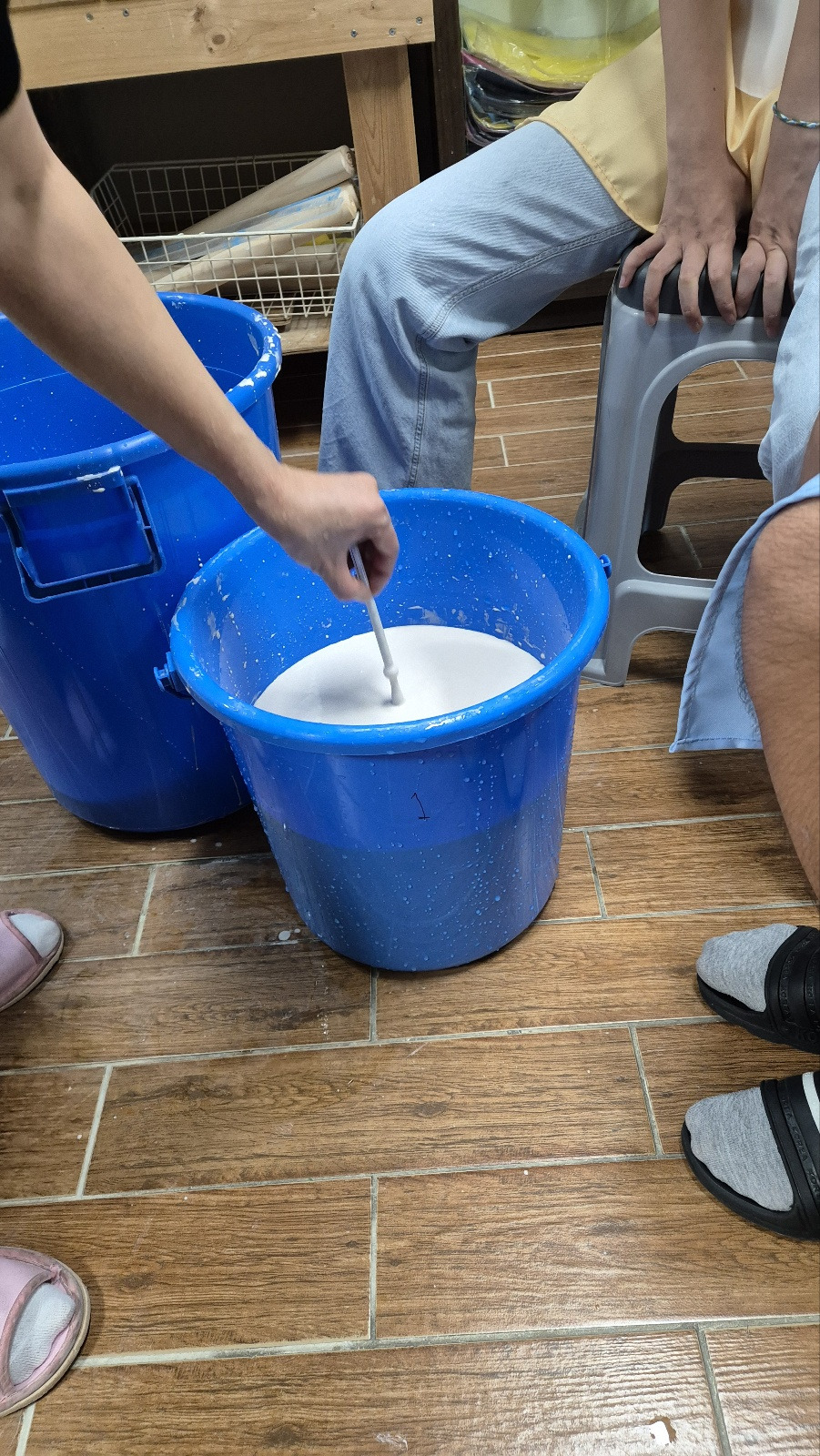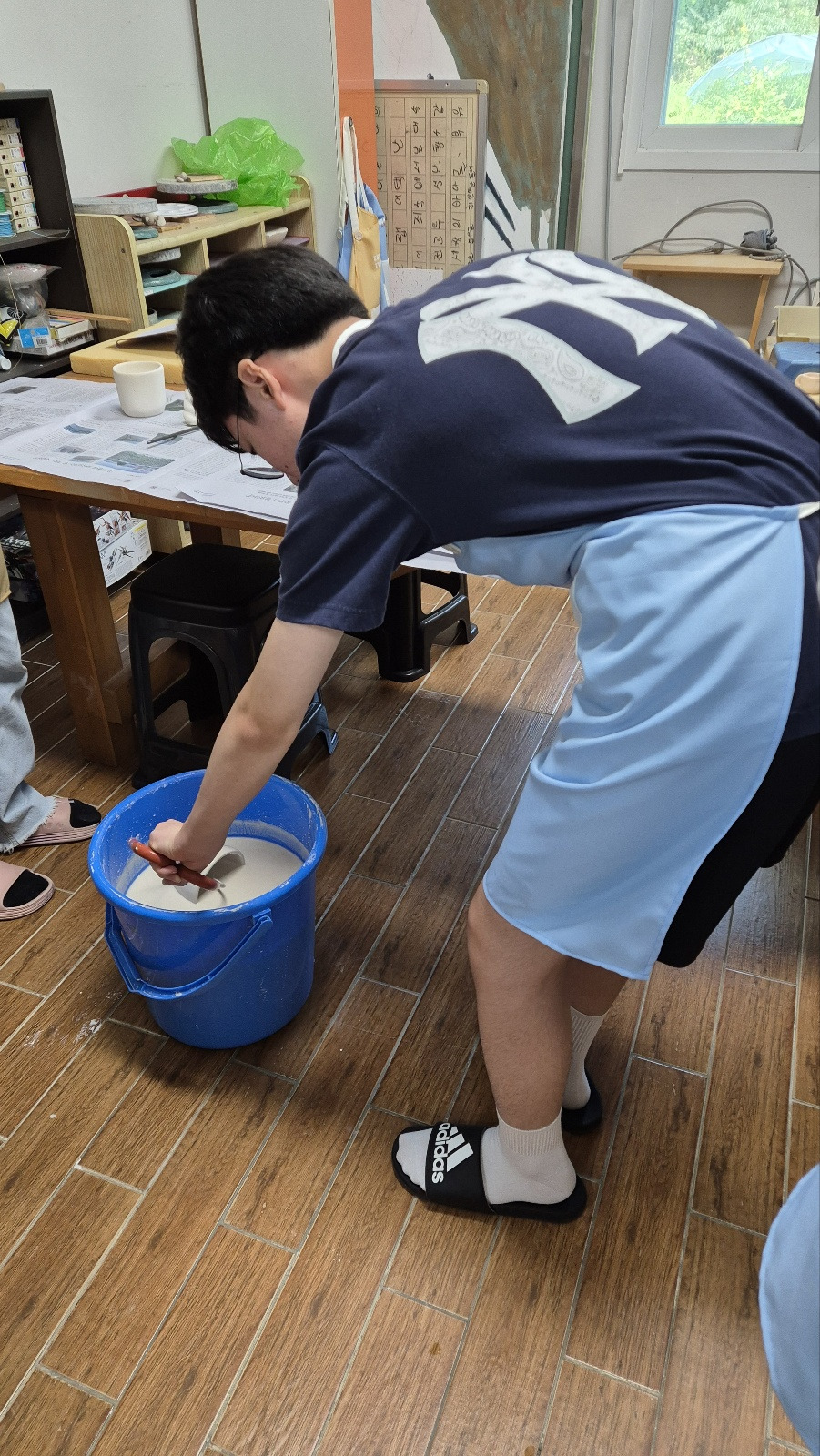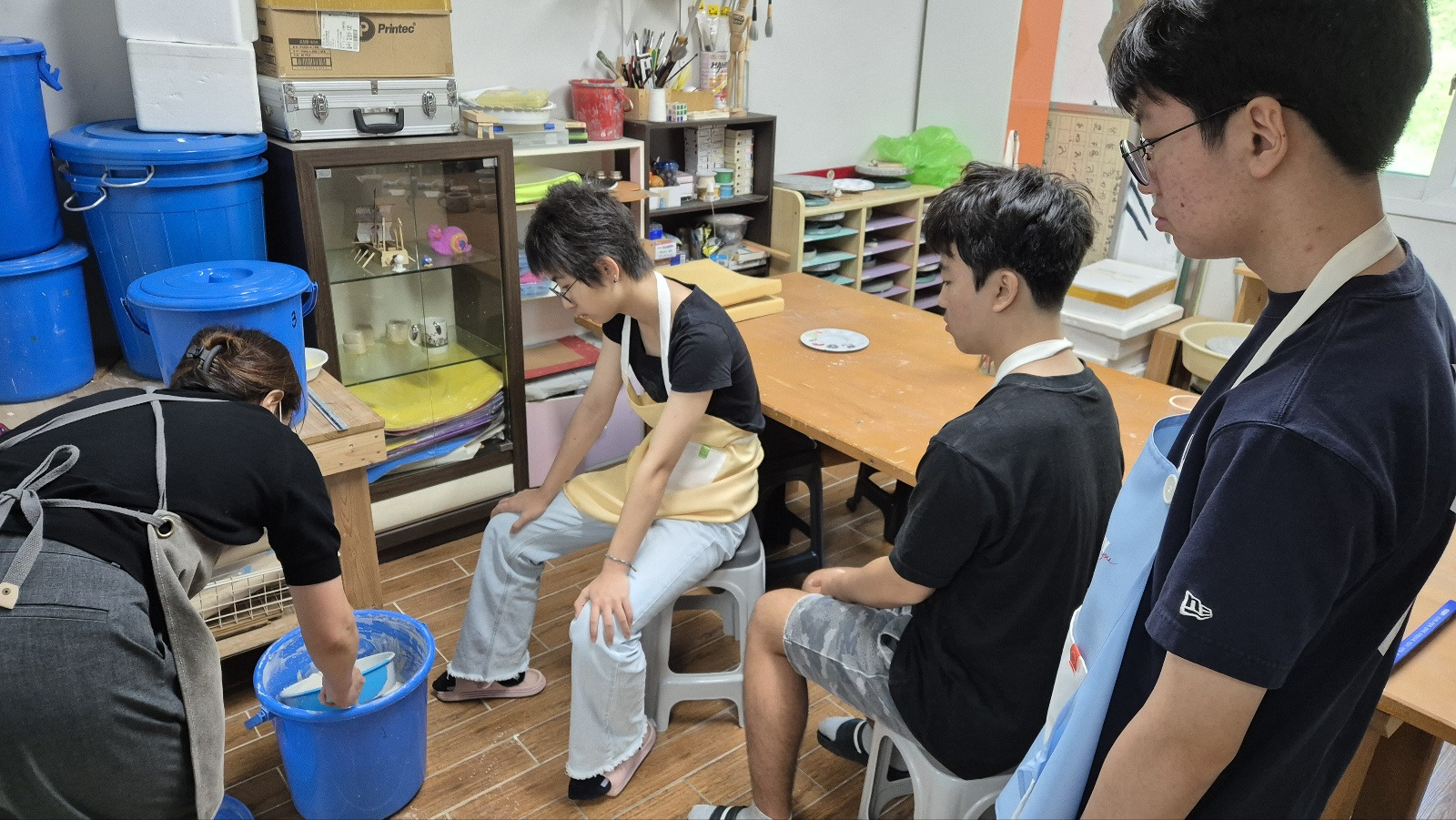 중간에 절대 유약통 속에 빠트리면 안 되기 때문에 긴장&집중하면서 각자 자신의 작품을 유약 처리해보았습니다.