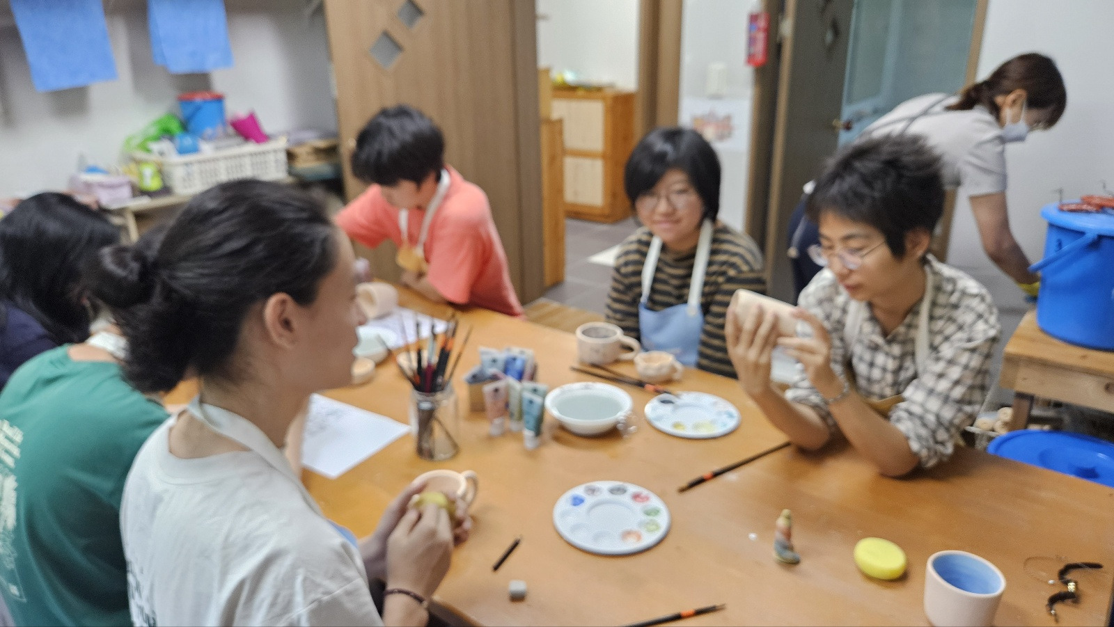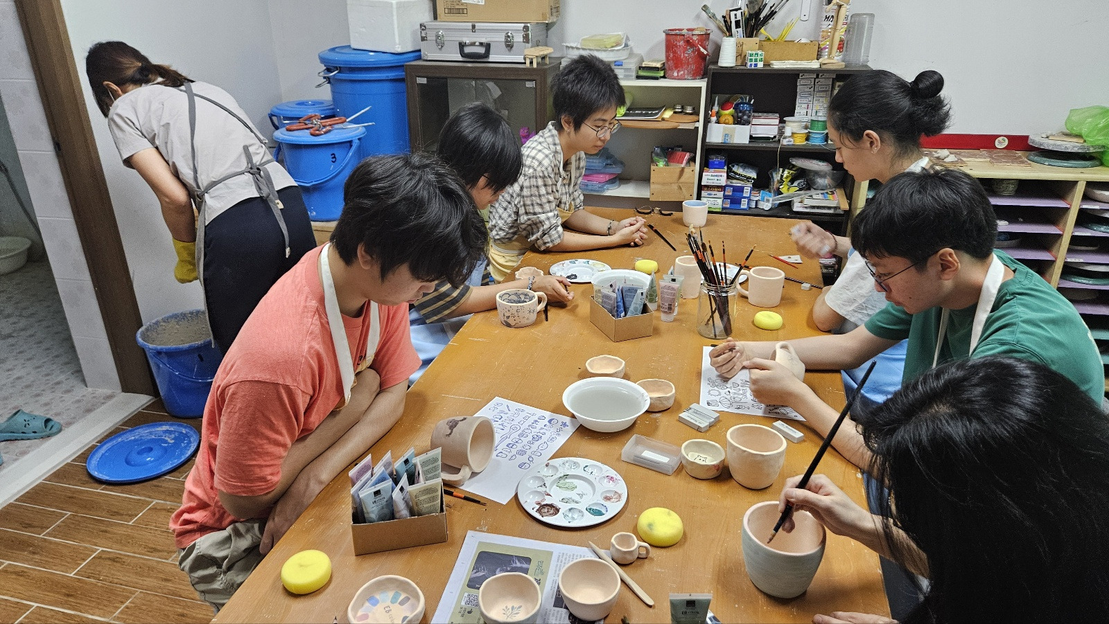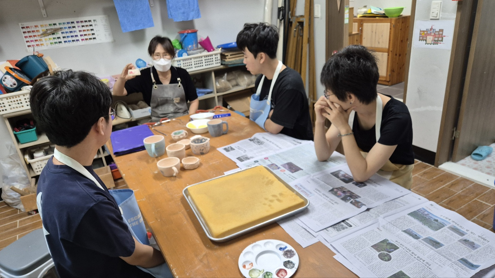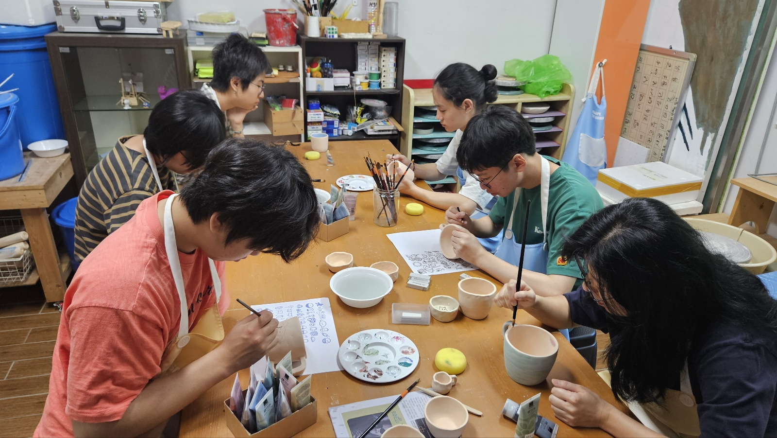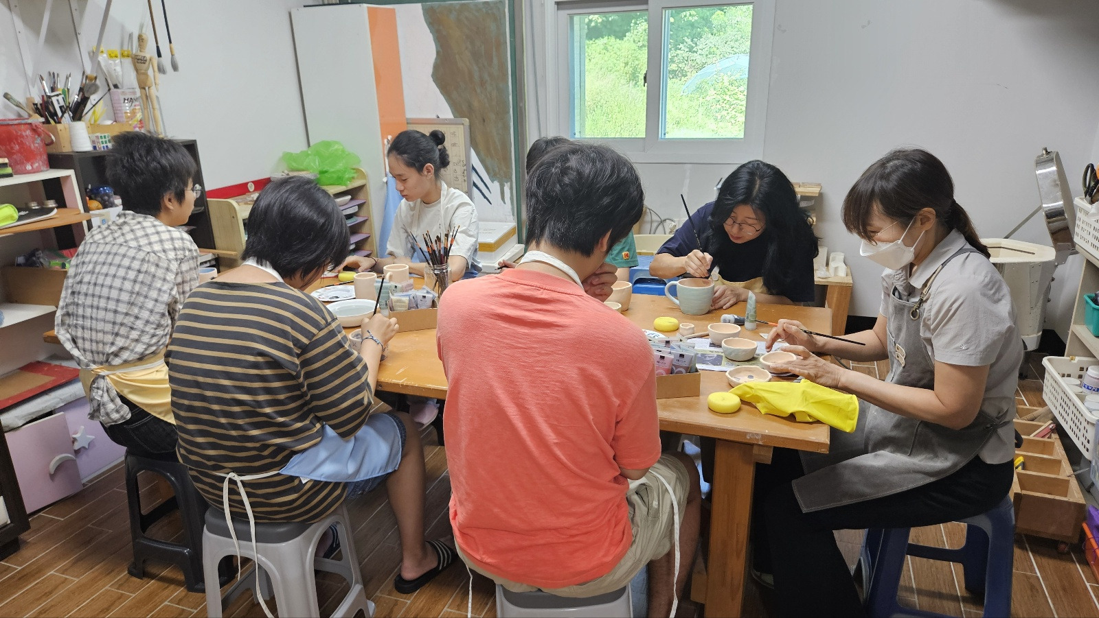 9월 도자수업 때는 여러 재료를 활용하여 채색을 해보기도 했어요.