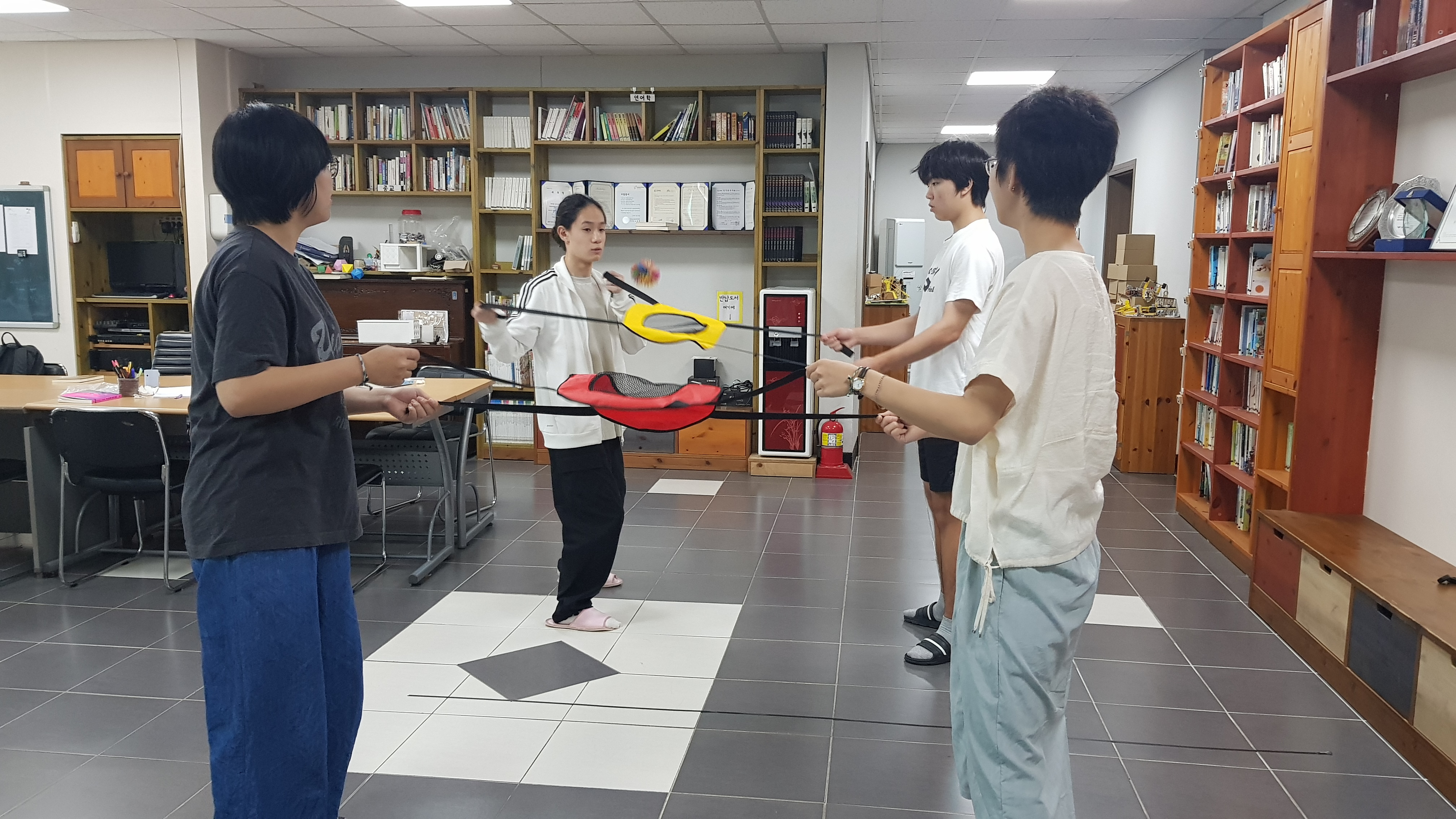 라나샘께서 여러 도구와 게임들을 준비해오셔서 실내에서 체육 수업을 진행했었어요. ^^