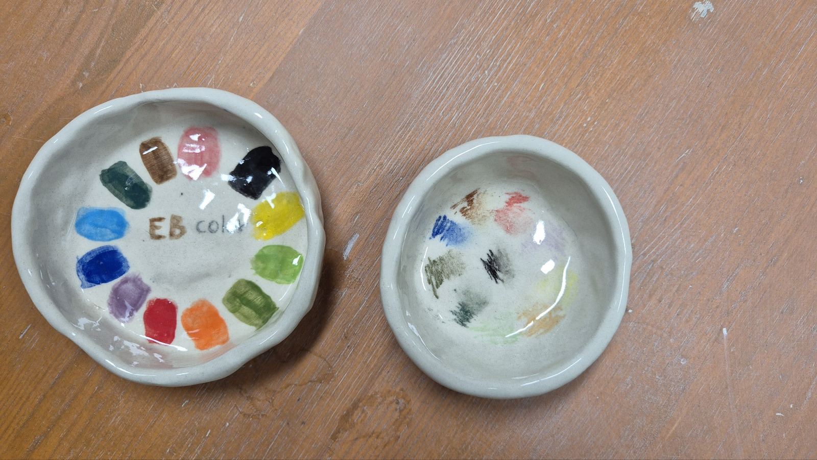 아이들이 연습 삼아 만든 그릇들에 색상 테스트 표를 만들어보았어요.