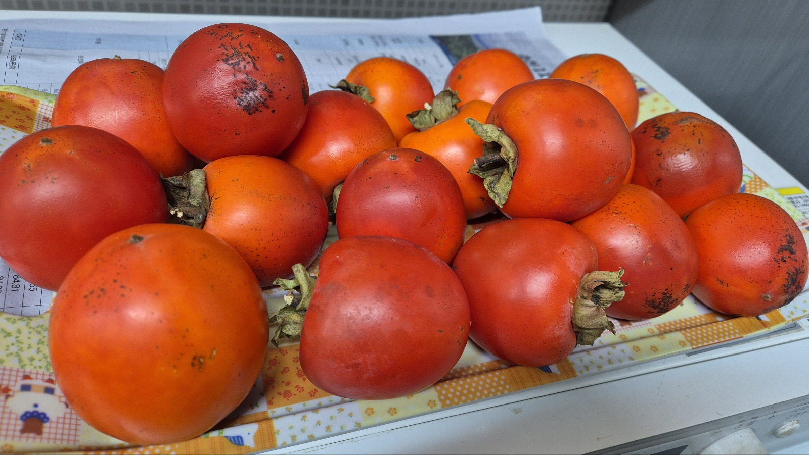 까치밥만 남기고 따서 깨끗이 닦아 홍시로 만들었답니다.