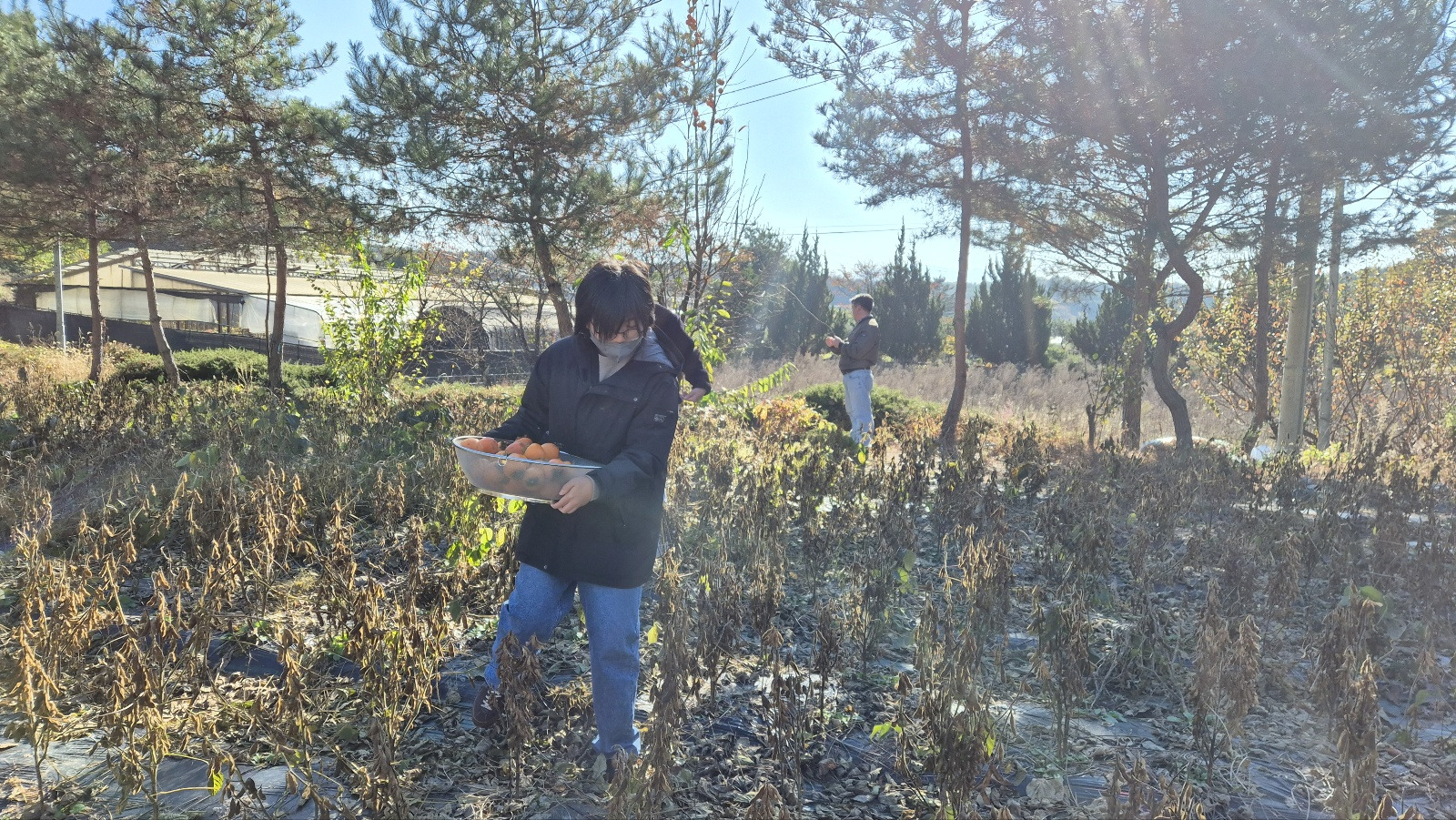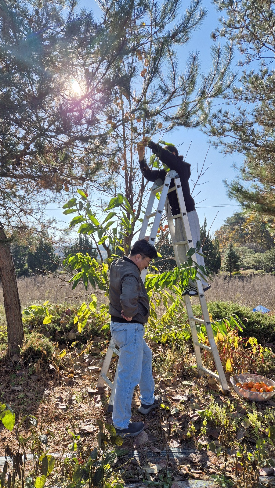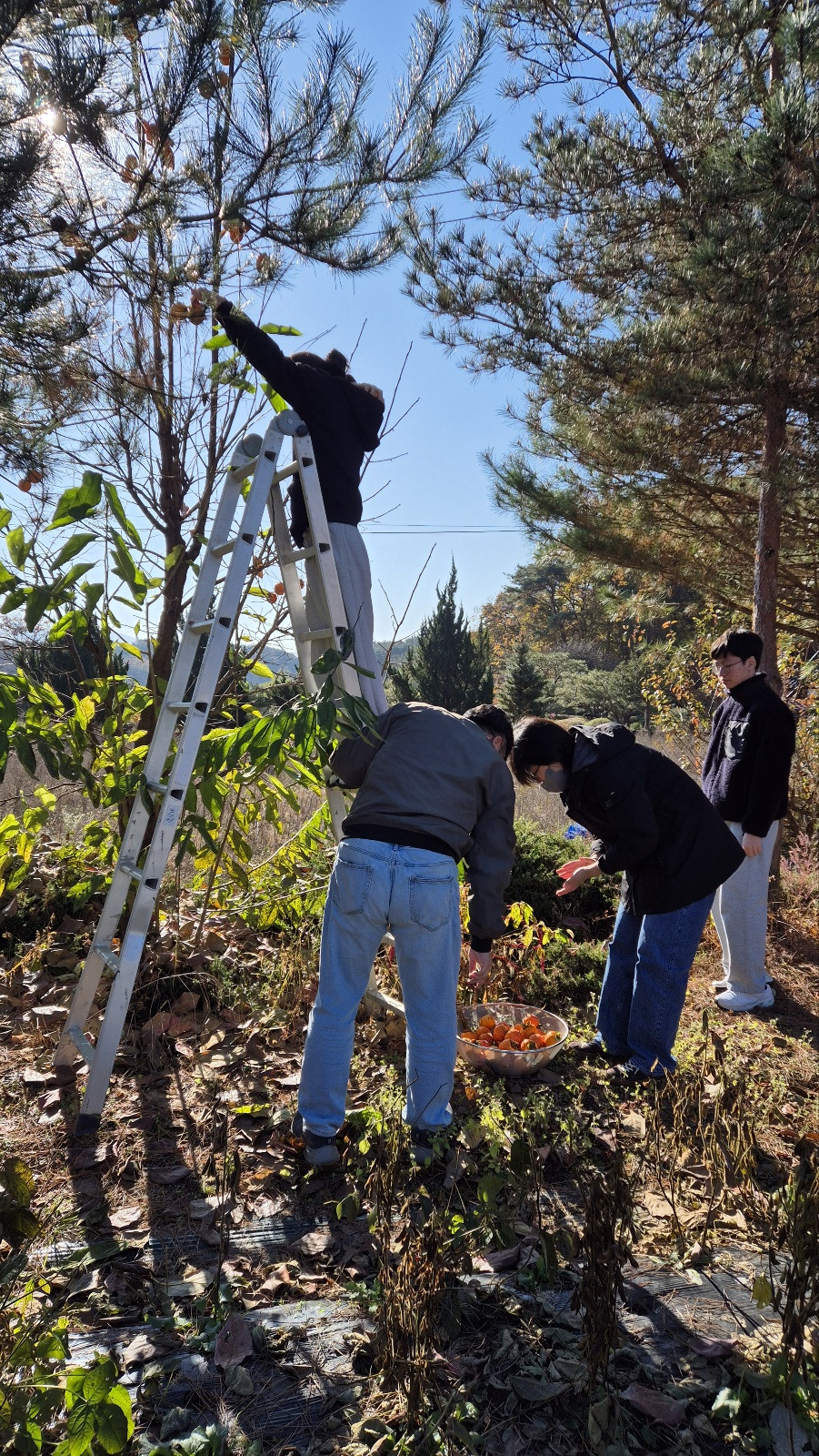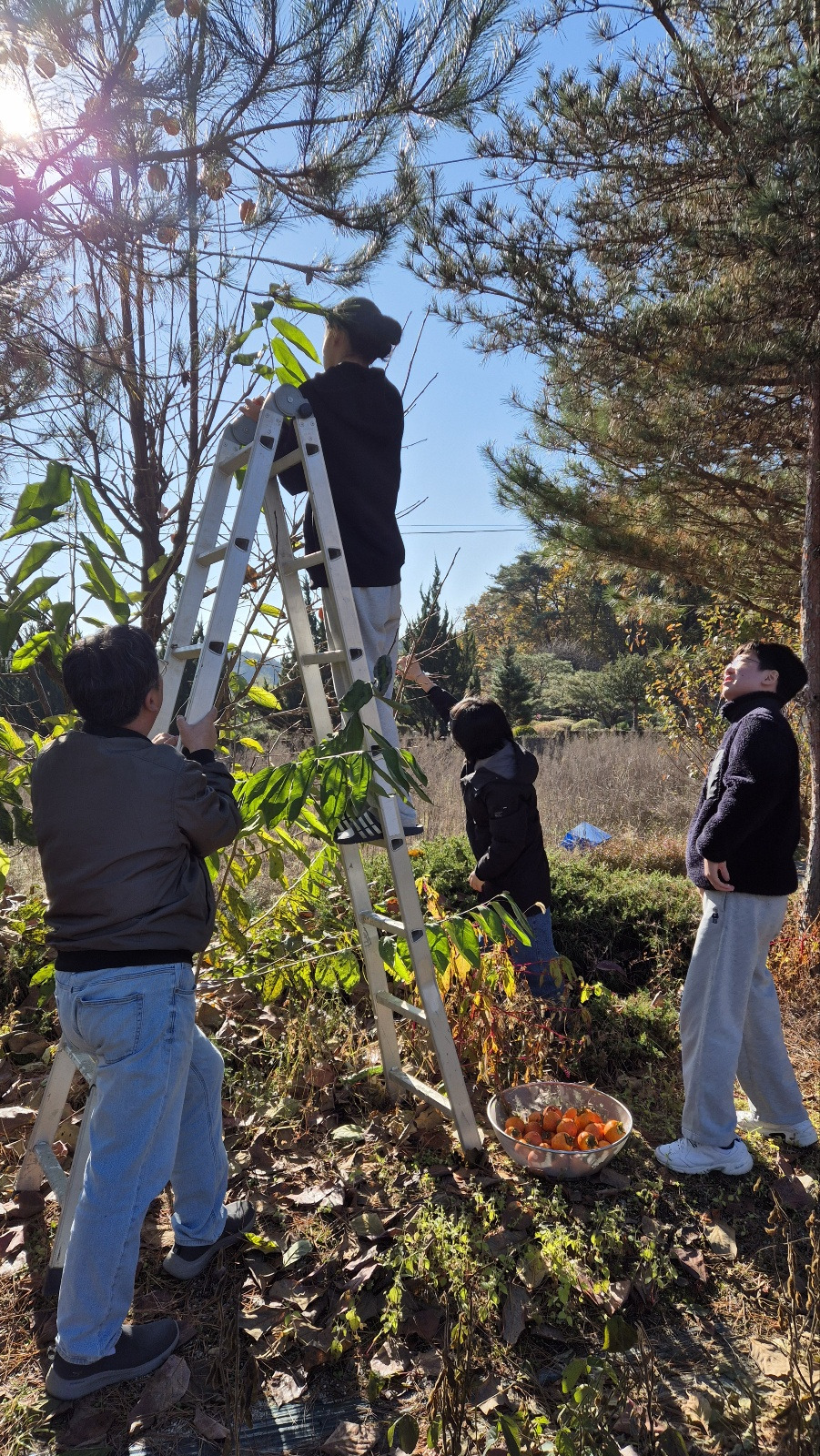 학교 마당 감나무에서 올해도 고맙게 열매를 맺어주었어요.