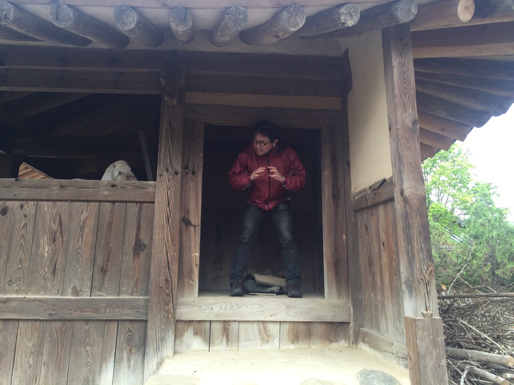 남사예담촌(가장 아름다운 마을 1호)의 최씨고가의 화장실에 대해 몸소 보여주시며 설명해 주시는 땅사랑님..화장실이 2층으로 되어있음
