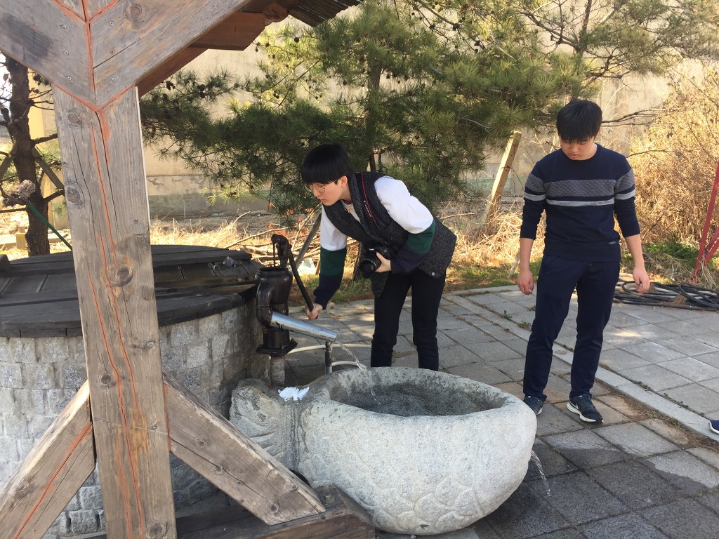 수도가 없을 때 사용하던 펌프. 마중물을 넣어서 실제로 물이 나오는 걸 체험했습니다.