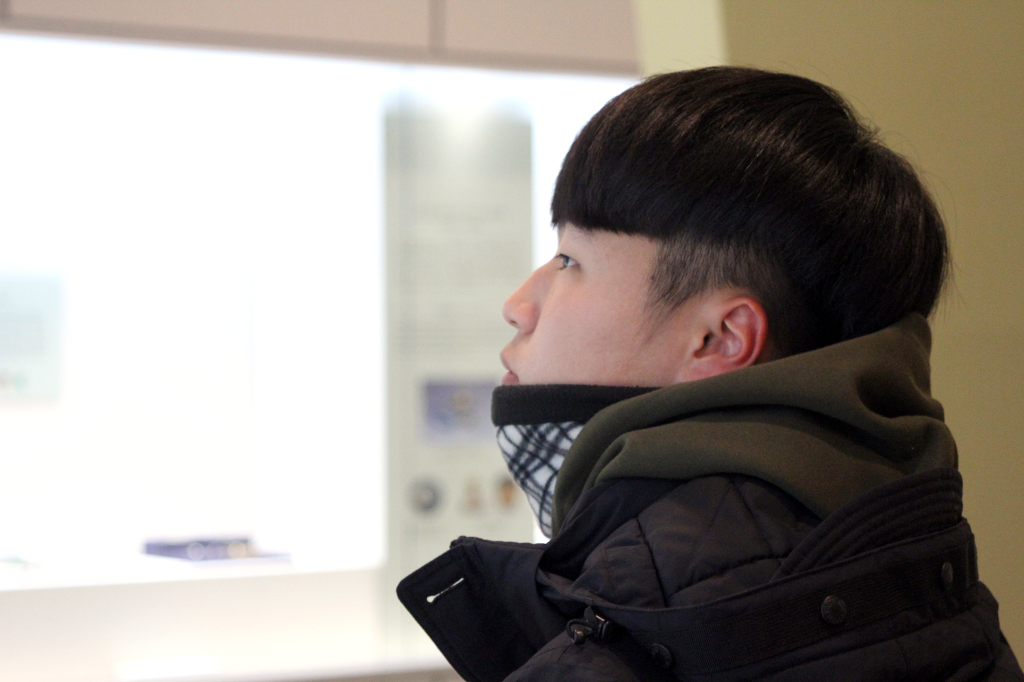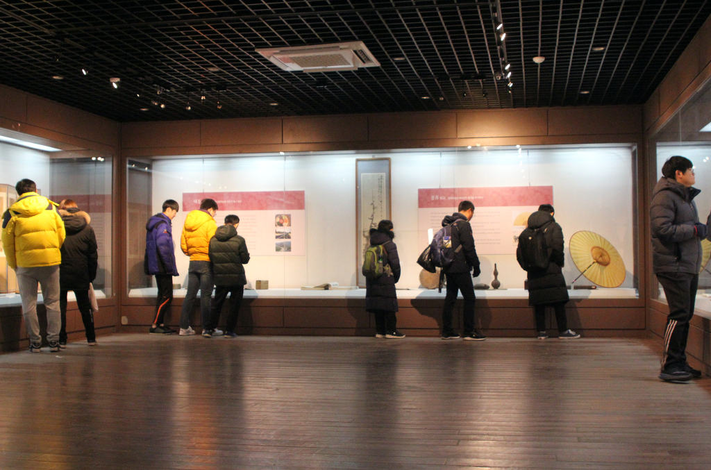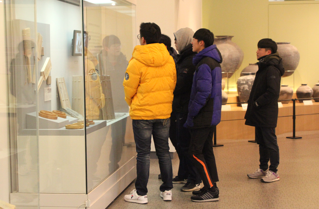 미륵사지 옆에 있는 박물관에서 열심히 공부하고 있는 아이들.