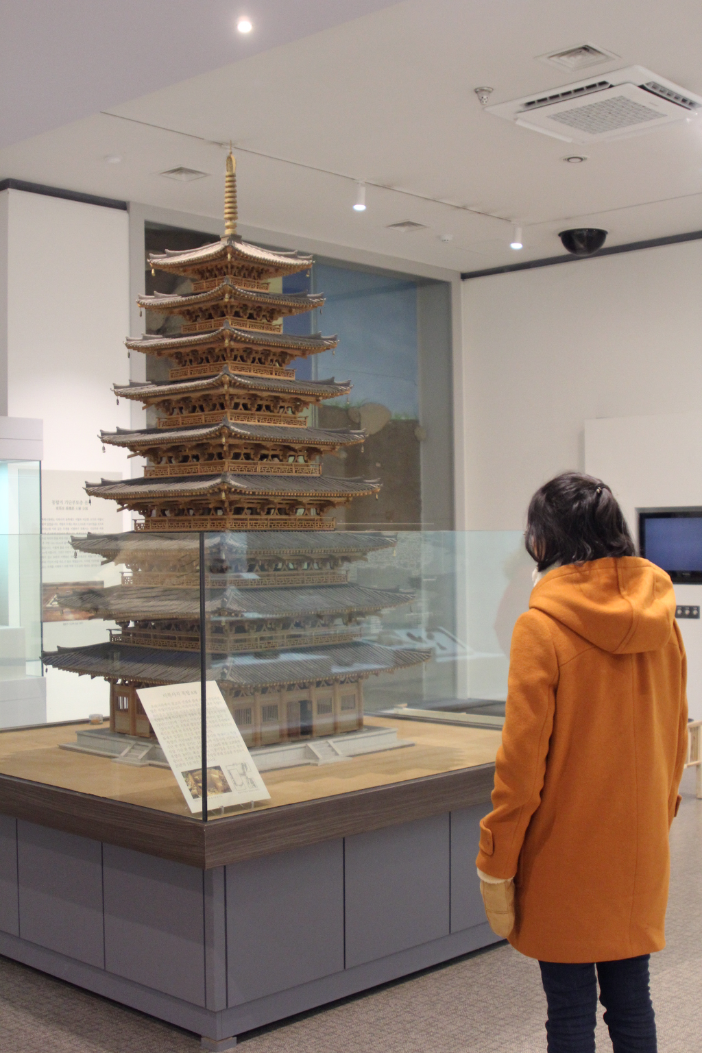 요 목탑은 두 개의 석탑 사이에 있었던 9층 목탑을 미니어처로 만든 것입니다.