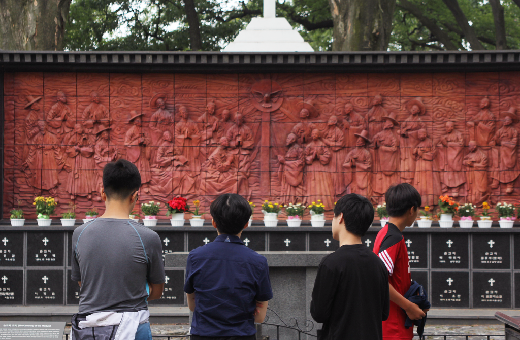 열심히 추모하는 것 처럼 보이지만 사실 이때 저녁식사에 대한 얘기를 나누고 있었습니다.