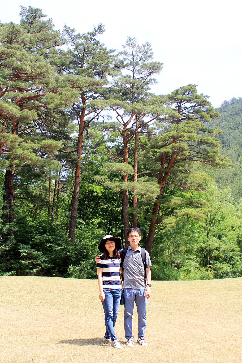 하늘을 찌르는 소나무를 배경으로 한 컷!