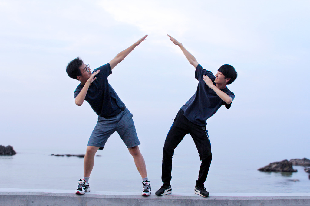 나란히 앉아 바다를 보는 사나이들~