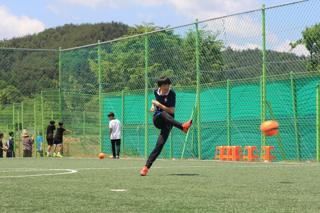 잠시 쉬는 시간에 공 차면서 놀고 있는 아이들 입니다!