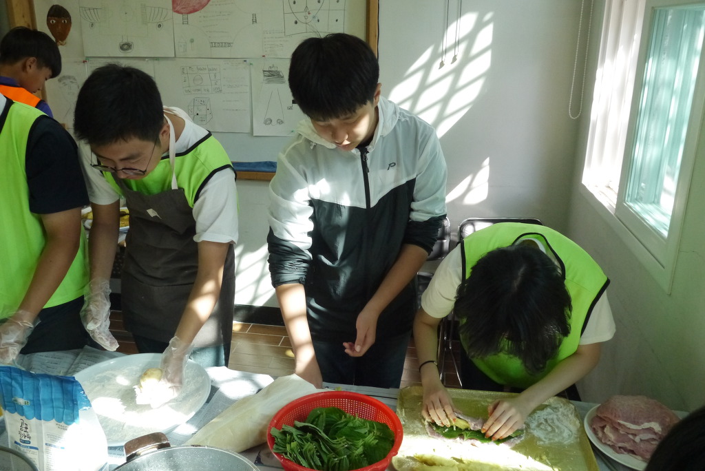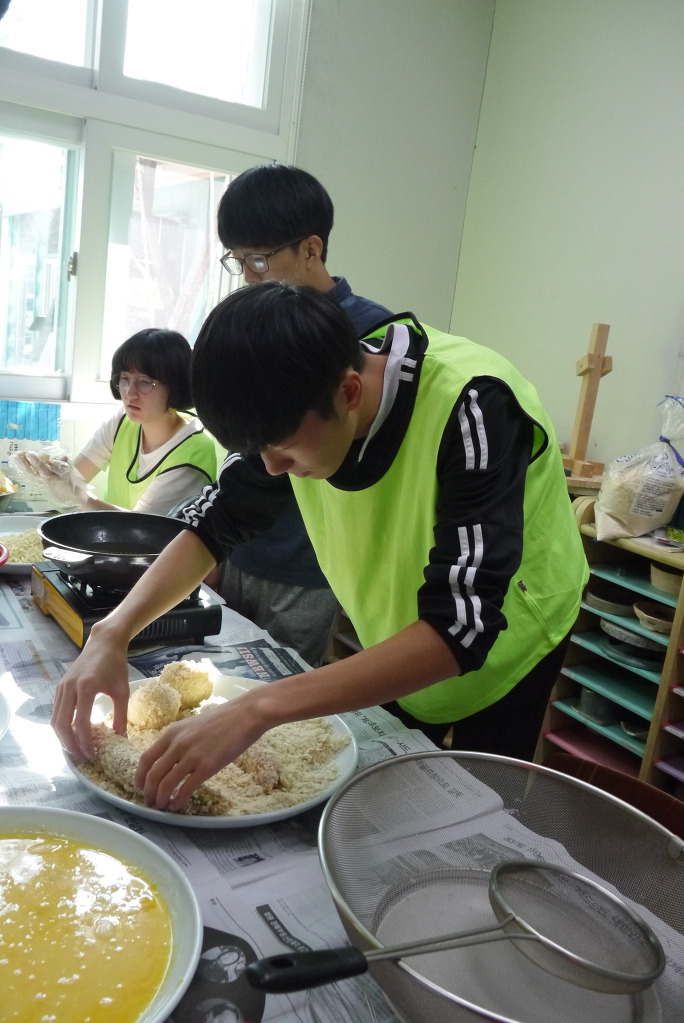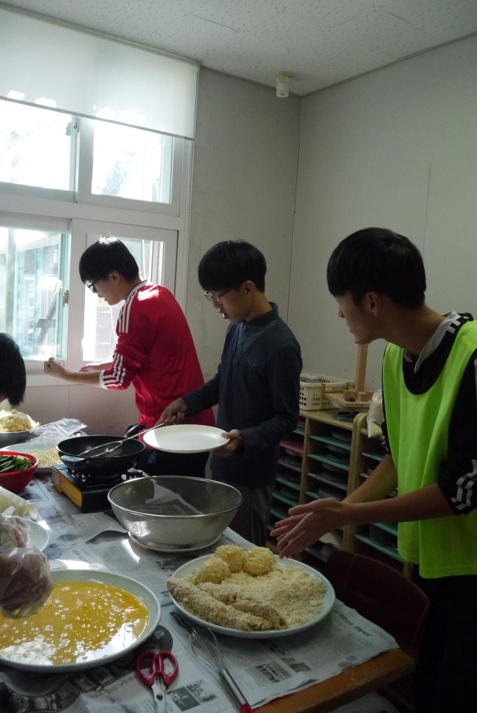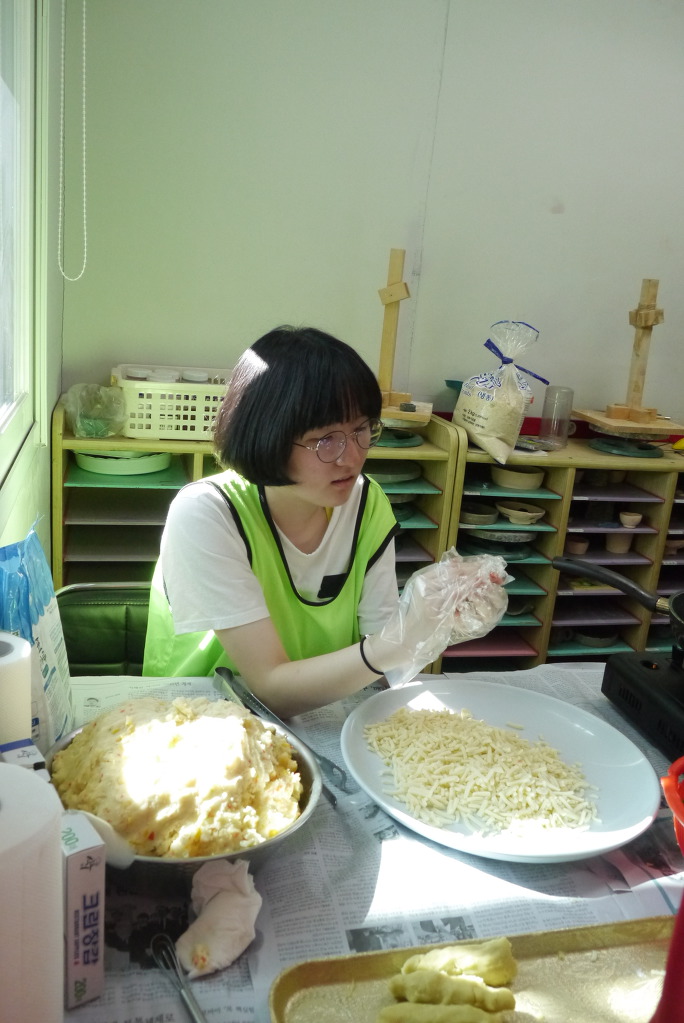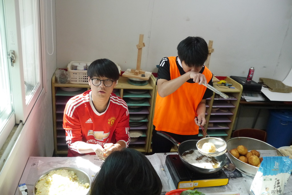 요리수업 때와 달리 좁은 공간에서 많은 인원이 한꺼번에 요리를 해야 해서 다소 힘든 점도 있었겠지만