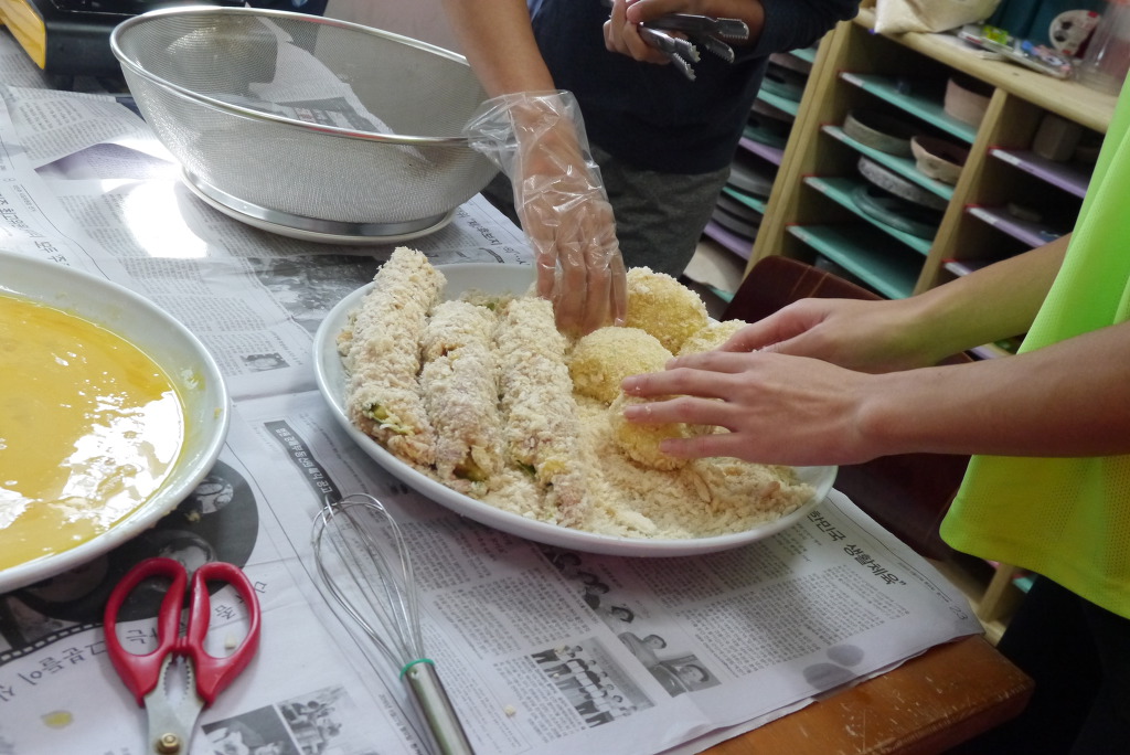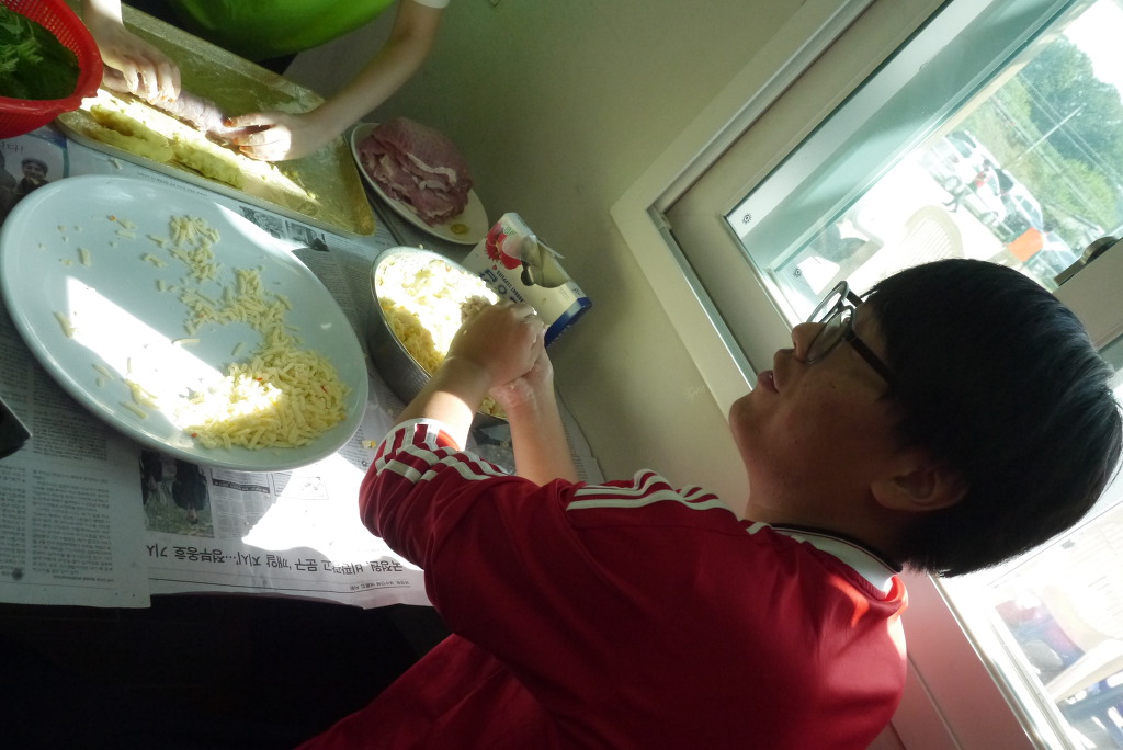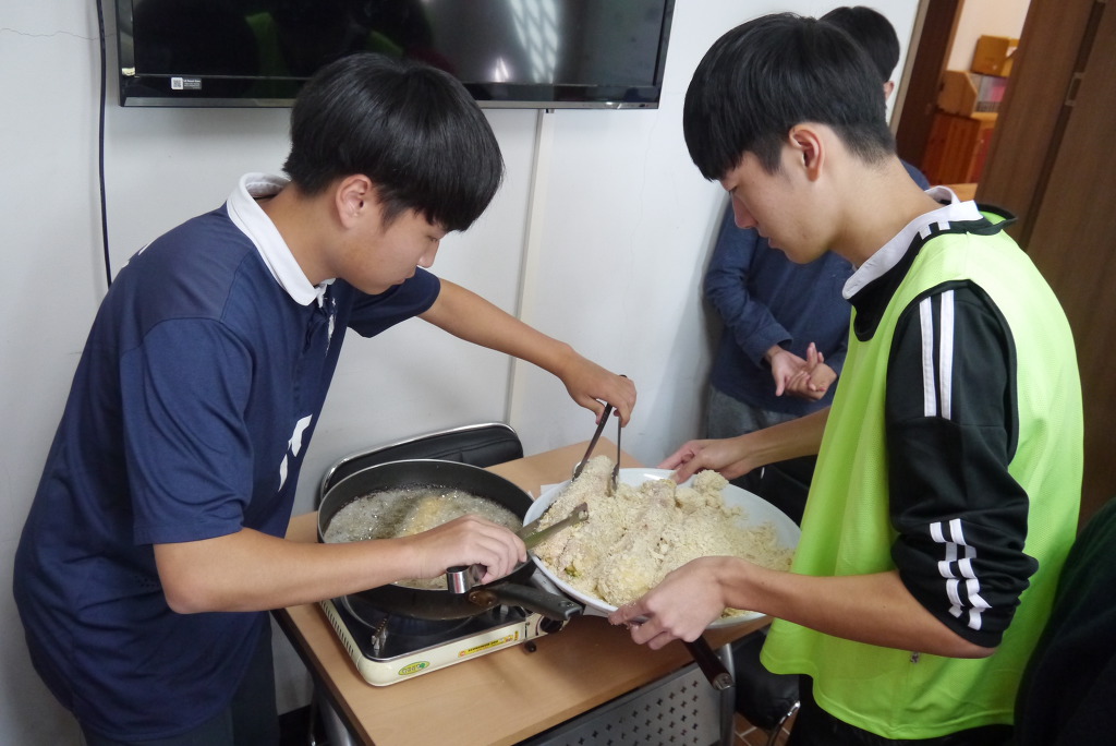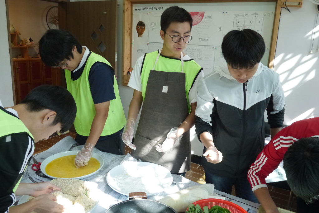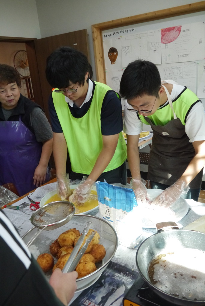 요리수업 때와 달리 좁은 공간에서 많은 인원이 한꺼번에 요리를 해야 해서 다소 힘든 점도 있었겠지만