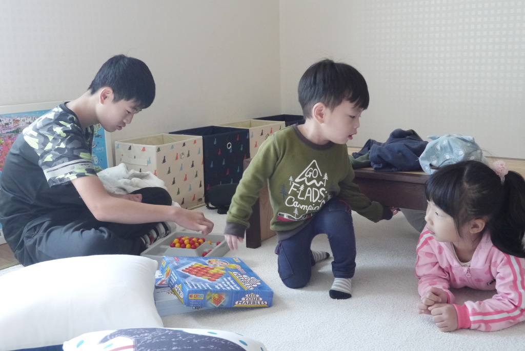 요리를 하지 않는 태희는 편하다락방에서 아이들과 놀아주었어요.