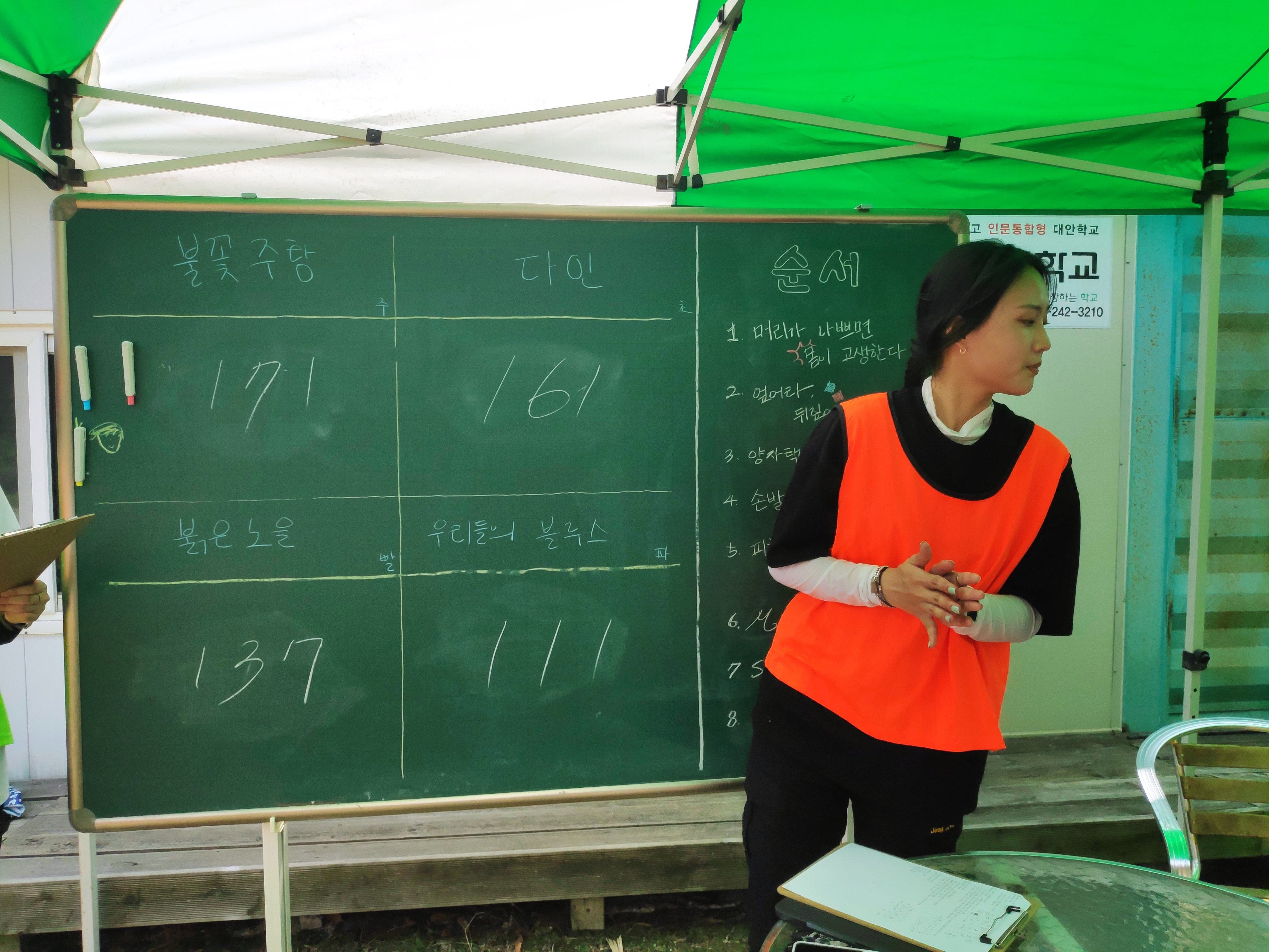 모든 팀들이 열심히 프로그램에 참여한 결과 불꽃주황팀이 다인팀과 10점 차이로 1등을 가져갔습니다.