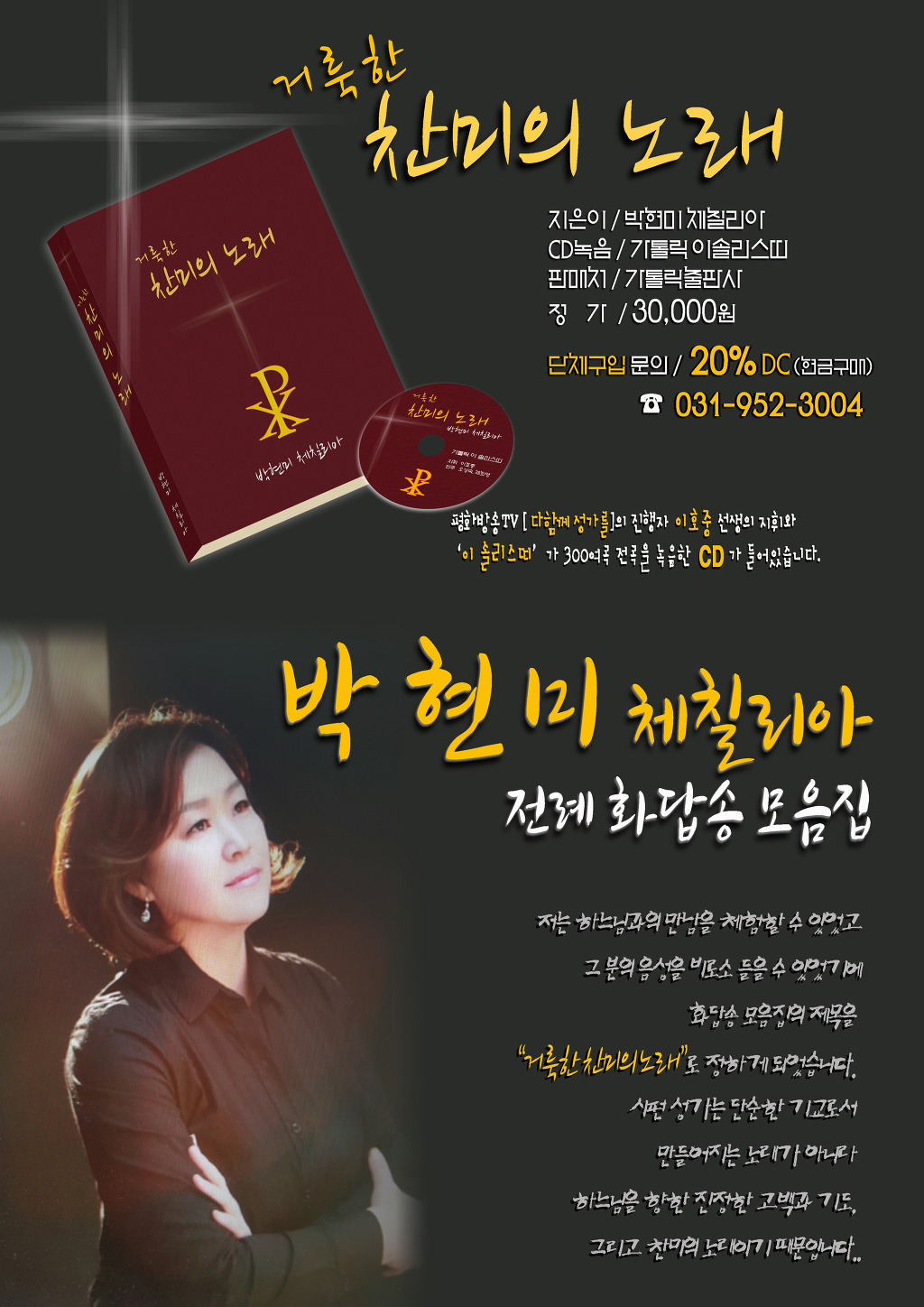 박현미 체칠리아 님의 화답송집 "거룩한 찬미의 노래"가 드디어 단행본으로 출간되었습니다. 출간된 화답송집에 대한 자세한 안내는 아래 포스터를 참고하시기 바랍니다.