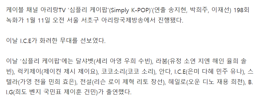 [[기사]][포토엔]아이스 은미 ‘보이시한 매력 물씬’ 작성자TigerLily_OFFICIAL|작성시간23.12.25|조회수25 목록 댓글 0 글자크기 작게가 글자크기 크게가 출처 : https://www.newsen.com/news_view.php?uid=201601141158361810[포토엔]아이스 은미 ‘보이시한 매력 물씬’케이블 채널 아리랑TV ‘심플리 케이팝’(Simply K-POP)’(연출 송지현, 박희주, 이재선) 198회 녹화가 1월 11일 오전 서울 서초구 아리랑국제방송에서 진행됐다. 이날 I.C.E가 화려한 무대...www.newsen.com 다음검색 현재 게시글 추가 기능 열기 북마크 공유하기 신고 센터로 신고 댓글 댓글 0 댓글쓰기 답글쓰기 댓글 리스트