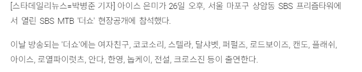 [[기사]][S포토+] 아이스 은미, "걸크러시 비주얼" (더쇼) 작성자TigerLily_OFFICIAL|작성시간23.12.25|조회수22 목록 댓글 0 글자크기 작게가 글자크기 크게가 출처 : https://www.stardailynews.co.kr/news/articleView.html?idxno=82272[S포토+] 아이스 은미, "걸크러시 비주얼" (더쇼) - 스타데일리뉴스[스타데일리뉴스=박병준 기자] 아이스 은미가 26일 오후, 서울 마포구 상암동 SBS 프리즘타워에서 열린 SBS MTB '더쇼' 현장공개에 참석했다. 이날 방송되는 '더쇼'에는 여자친구, 코코소리, 스텔라, www.stardailynews.co.kr 다음검색 현재 게시글 추가 기능 열기 북마크 공유하기 신고 센터로 신고 댓글 댓글 0 댓글쓰기 답글쓰기 댓글 리스트