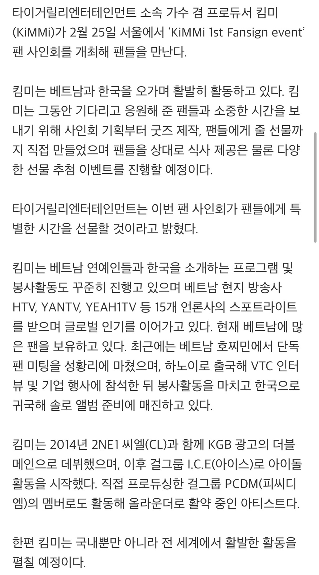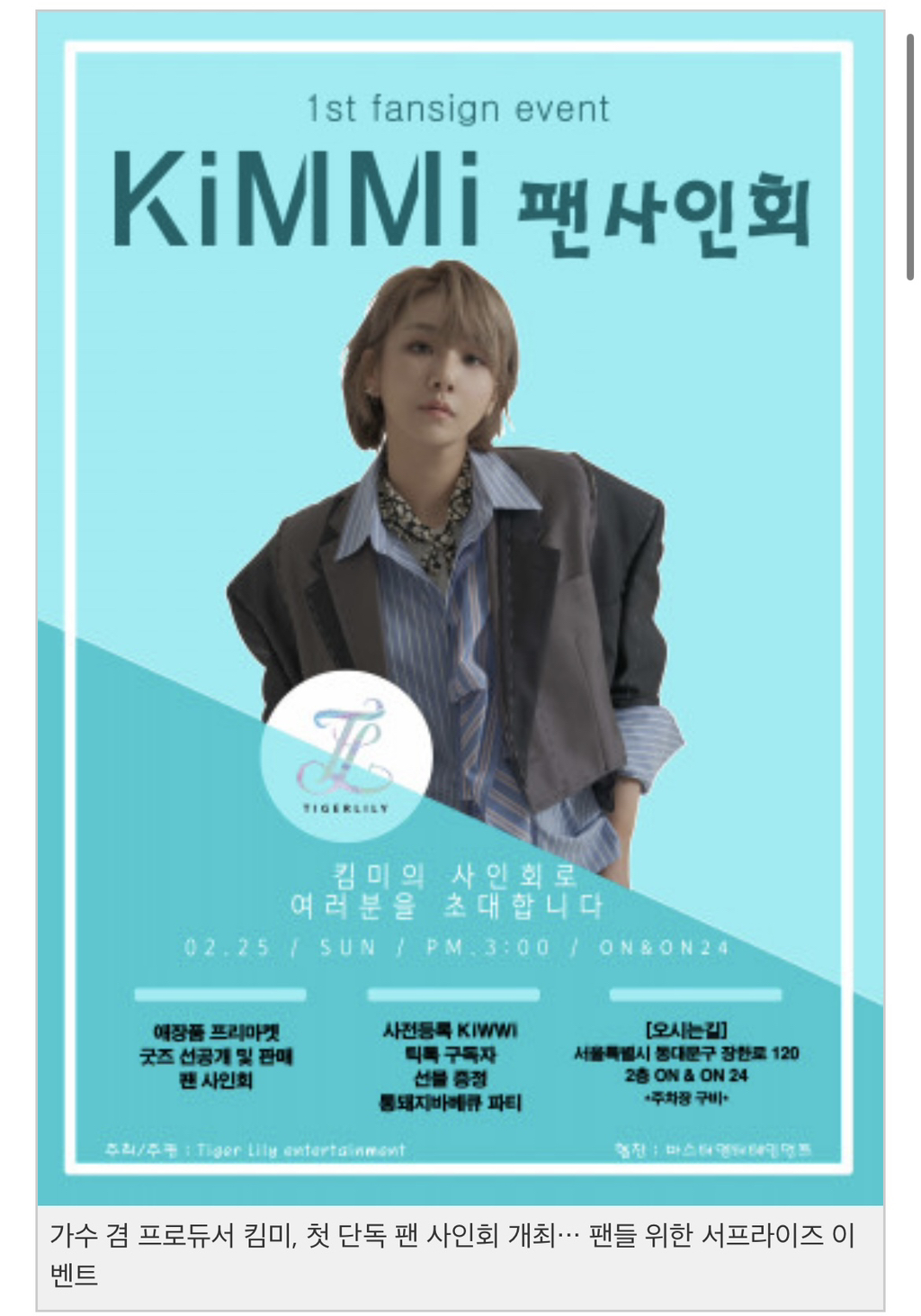 [[기사]](굿뉴스) 가수 겸 프로듀서 킴미, 첫 단독 팬 사인회 개최… 팬들 위한 서프라이즈 이벤트 작성자TigerLily_KiMMi|작성시간24.02.23|조회수13 목록 댓글 0 글자크기 작게가 글자크기 크게가 출처 : https://www.goodnc.co.kr/bbs/board.php?bo_table=news&wr_id=4242 다음검색 현재 게시글 추가 기능 열기 북마크 공유하기 신고 센터로 신고 댓글 댓글 0 댓글쓰기 답글쓰기 댓글 리스트