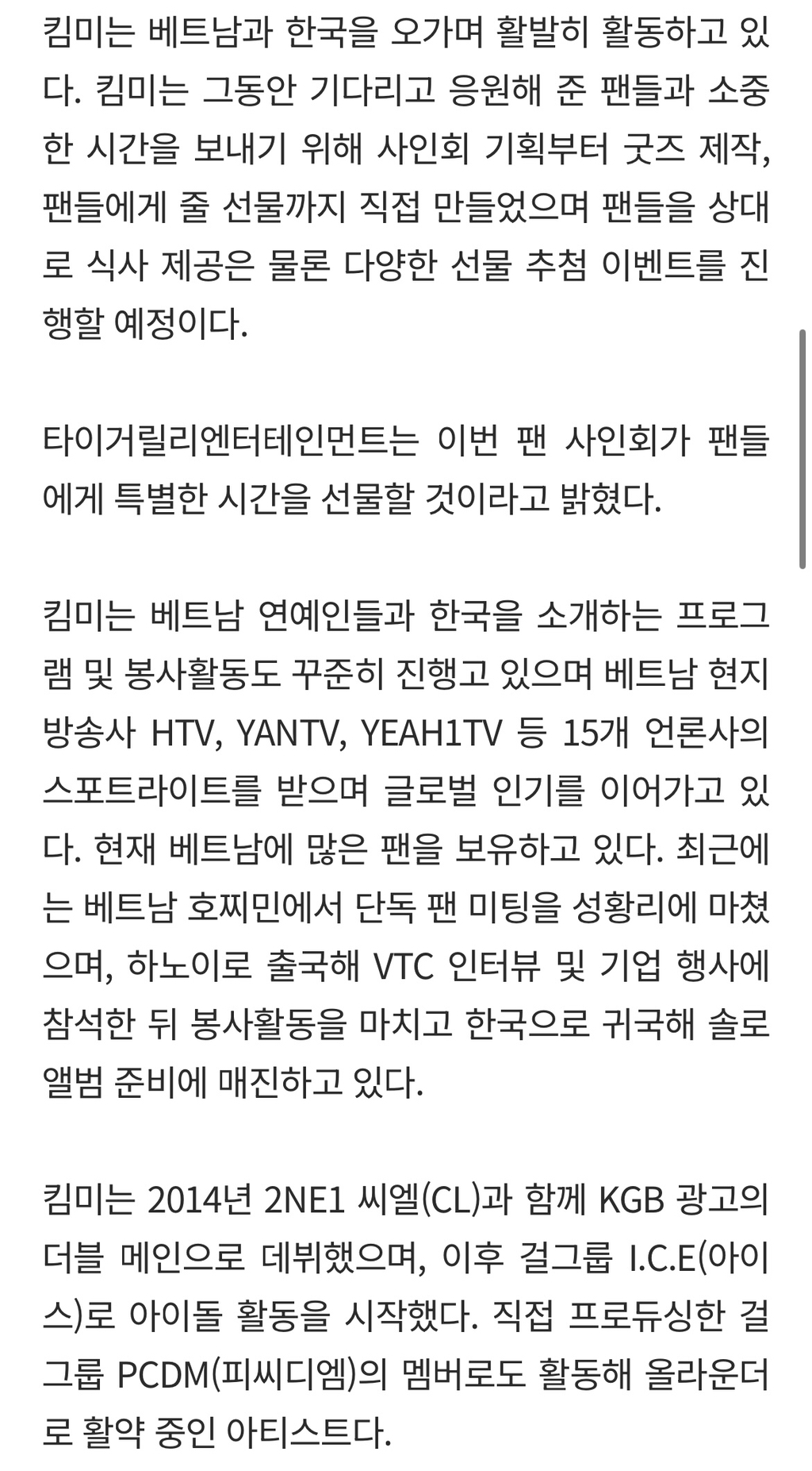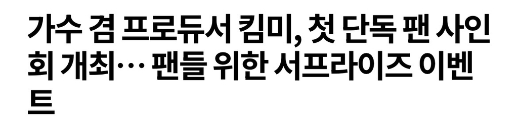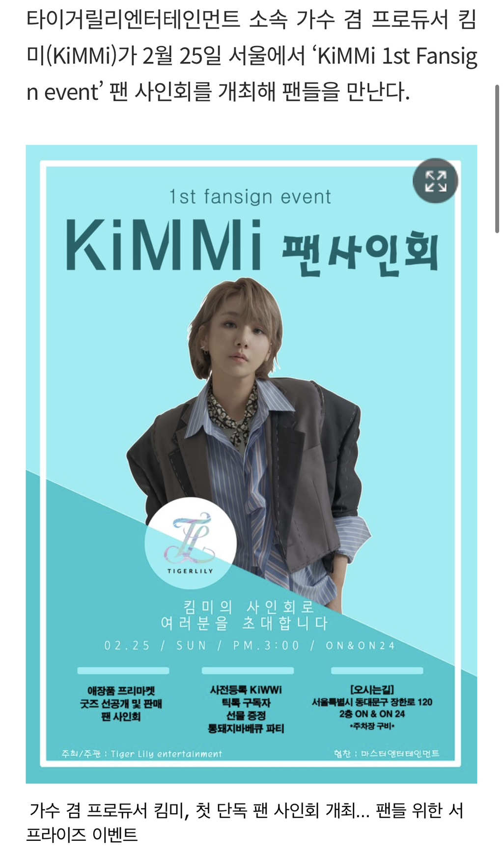 [[기사]](The post) 가수 겸 프로듀서 킴미, 첫 단독 팬 사인회 개최… 팬들 위한 서프라이즈 이벤트 작성자TigerLily_KiMMi|작성시간24.02.23|조회수21 목록 댓글 0 글자크기 작게가 글자크기 크게가 출처 : http://m.thepostkorea.com//8018 다음검색 현재 게시글 추가 기능 열기 북마크 공유하기 신고 센터로 신고 댓글 댓글 0 댓글쓰기 답글쓰기 댓글 리스트