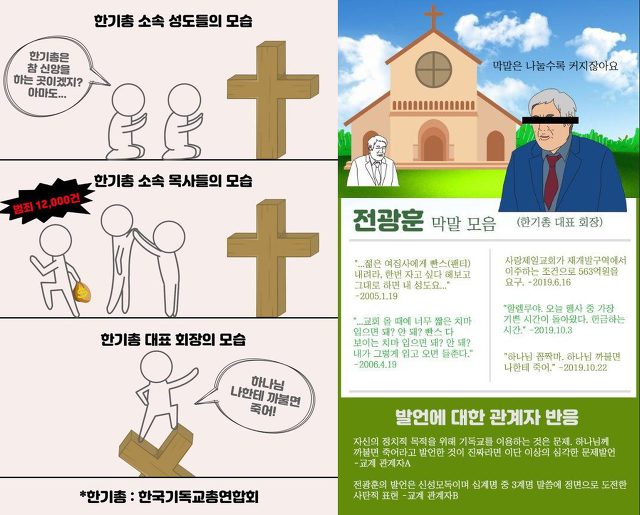 한기총을 대표한다는 전광훈 목사의 비상식적이고 몰지각한 망언에대해