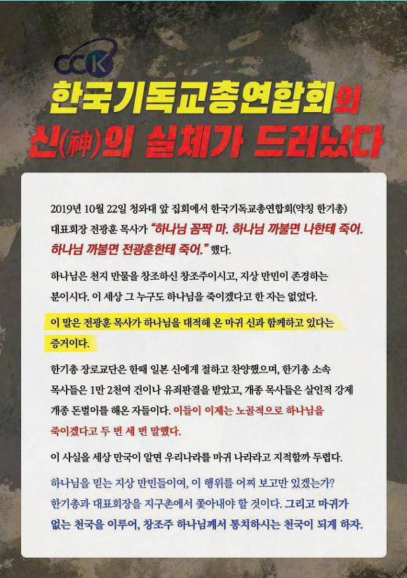 우리 국민을 우롱하고 신성모독에 헌법까지 무시한 한기총은 반드시 폐쇄되고