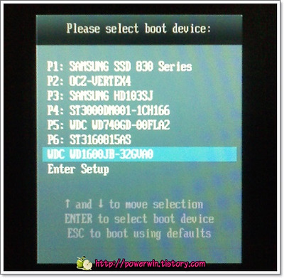 메인보드에 따라 다른데 처음에 바이오스가 포스팅 될 때 부트 메뉴를 호출하는 키가 전부 있습니다. 포스팅 과정을 잘 보시면 키를 출력해주니 본인의 키를 확인하시고, Asus 메인보드는 거의 F8 키입니다. 아무튼 해당 키를 누르면 부팅 가능한 장치들이 출력되고 거기에서 USB 외장 하드(플래시 메모리)를 선택하시면 됩니다.